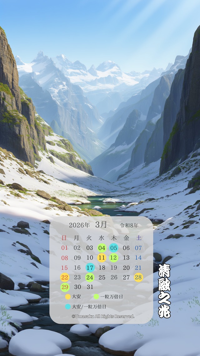 【風景開運スマホ用壁紙】 遥望と兆しの山景〈2〜3月〉カレンダーあり(利用コード1ヶ月付き)