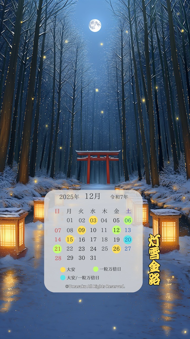 本商品は、 2026年 2月・3月のカレンダー付きスマホ壁紙 2枚 と、 31日分(+5日間の猶予付き) の「うまさくセレクト」利用コードをセットにしたデジタル商品です。 ※今回は 風景特化デザイン となっており、 「うまさく巫女」は登場しません。 ✅ 2月:飛龍金道(ひりゅうきんどう) 朝焼けの山間を流れる一筋の黄金の川。 まるで天と地を繋ぐ“飛龍”の道のような神秘の光景が、 2月のあなたに力強い導きをもたらします。 ✅ 3月:霧照の谷(むしょうのたに) 深い森の中、射し込む陽光が霧を照らし、鳥居を包む幻想的な風景。 物事の本質が静かに見えてくるような、深い癒しのひとときを。 「うまさくセレクト」で導いた数字を、 こうした美しい風景とともに眺めることで、 あなたの願いや選択が、より良い未来に繋がっていきますように。 【重要】ダウンロードは「うまさく公式リンク」から! ✅ BASEのダウンロードリンクはスマホ非推奨です。 ✅ 動作が不安定なため、必ず「うまさく公式ダウンロード」をご利用ください! 【ご利用の流れ】 1️⃣ ご購入後、5分以内に「利用コードの案内メール」が届きます。 2️⃣ うまさくセレクトの画面上部にある 「壁紙表示・ダウンロード」ボタン をタップ 3️⃣ メールに記載の「利用コード」を入力し、壁紙を表示 4️⃣ スマホに保存して壁紙に設定してお楽しみください。 ※現在、安全性のため メール内にURLは記載していません。 ※ダウンロードは うまさくセレクト画面の上部 から行えます。 【保存方法】 iPhone:画像を長押し → 写真に保存 Android:画像を長押し → 画像をダウンロード ※スマホでダウンロードがうまくいかない場合は、PCでダウンロードしてください。 【「うまさくセレクト」利用コードについて】 ▶ 本商品は「壁紙」と「うまさくセレクト利用コード」のセット商品です。 ✅ 利用コードは本商品の一部として提供されており、単体販売は行っておりません。 ✅ 1枚ご購入につき、31日分(+5日分の猶予付き)の利用コードが付属します。 (合計で36日分の有効期限になります。) ✅ 有効期限が過ぎる前に、新しい壁紙を購入することで、スムーズに継続利用が可能です。 ✅ 本製品はデジタルコンテンツ(ダウンロード販売のみ)です。 ✅ 画像はスマホの壁紙として最適化されています。 【決済方法】 ✅ 壁紙(デジタルコンテンツ)は、クレジットカード、PayID(あと払い)のみとなります。 ✅コンビニ払いをご希望の方はPayIDをご利用ください。 【海外ユーザーの方へ】 ✅ 壁紙(デジタルコンテンツ)は、日本国内・海外どちらでも購入&ダウンロード可能です。 ✅ ただし、一部の決済方法(コンビニ決済・PayID)は日本国内限定となります。 ✅ 海外からの購入は、クレジットカード決済のみ対応しております。 【重要】メールアドレスの入力ミスに注意! ✅ 間違えると利用コードが届きません! ✅ ご購入前にメールアドレスをしっかり確認してください。 【ご安心ください】 ✅ うまさくセレクトは買い切り制です。 ✅ 購入後に追加でお金がかかることは一切ありません。 ✅ 有効期限を過ぎても、自動的に料金が発生することはありません。再購入をご希望の場合のみ、お手続きいただく形となります。 ※デジタル商品のため、ご購入後のキャンセル・返金はできません(詳細は「特定商取引法に基づく表記」をご確認ください)。
