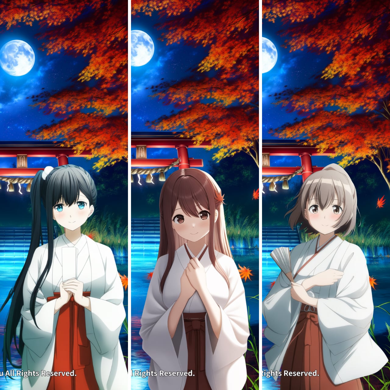 秋風がそっと吹き抜ける中、巫女たちはそれぞれの想いを胸に祈りを捧げます。