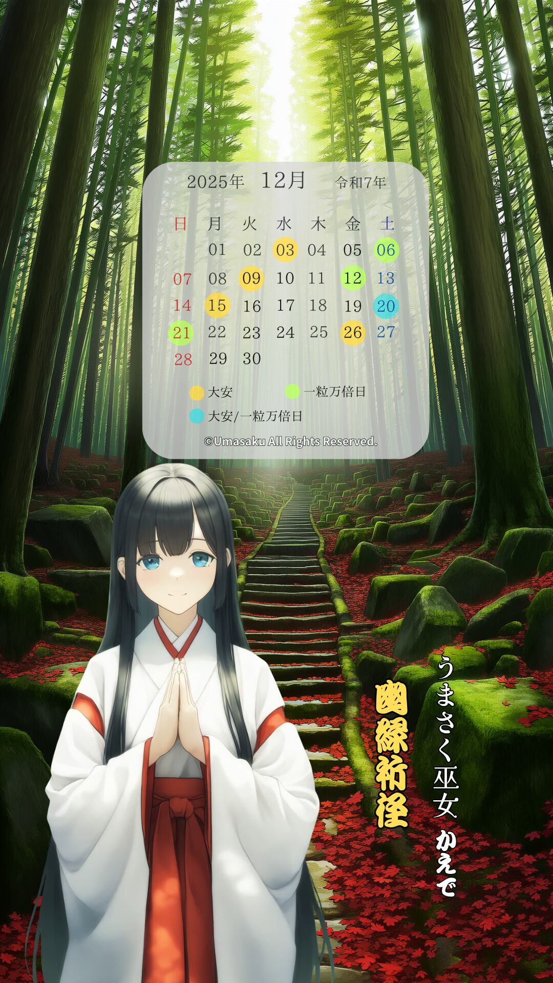 壁紙はカレンダー付き/巫女つきの“ご利益デザイン”