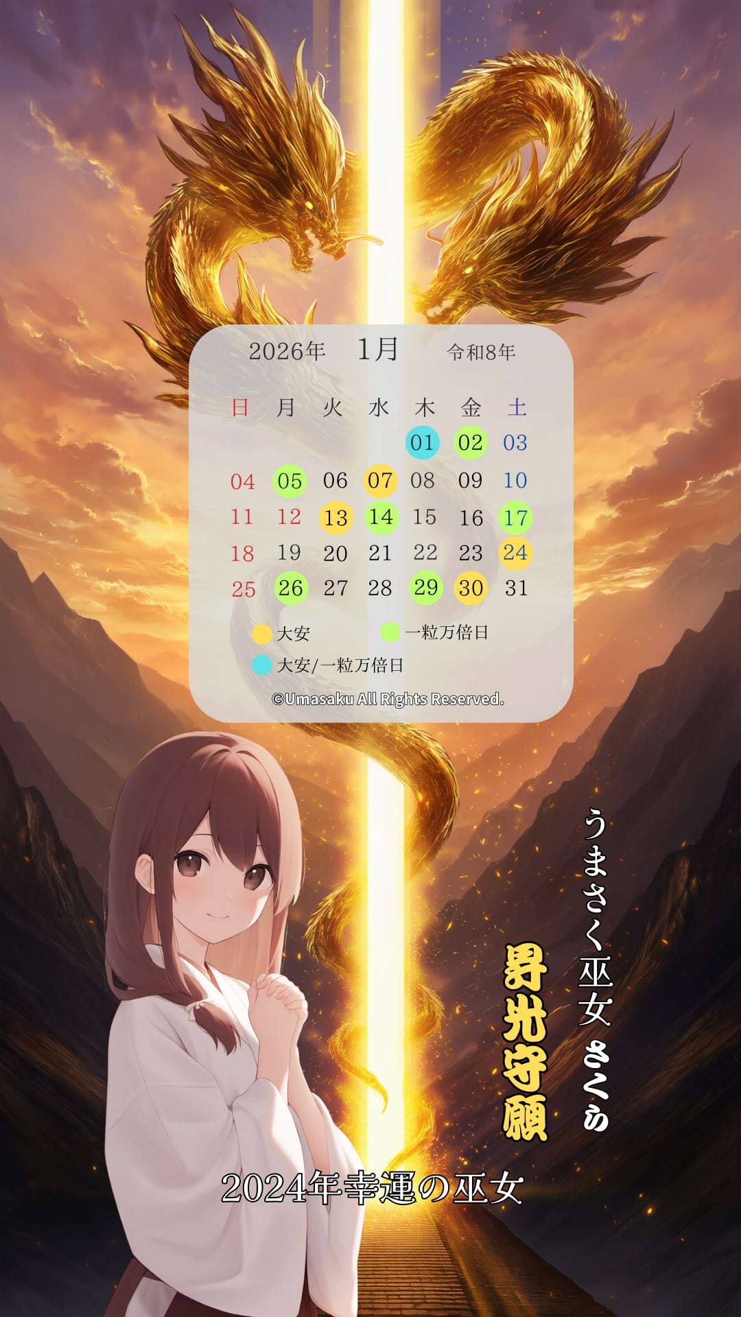 金龍の昇光と巫女の祈り──運気が切り替わる冬に捧ぐ、特別な2枚。