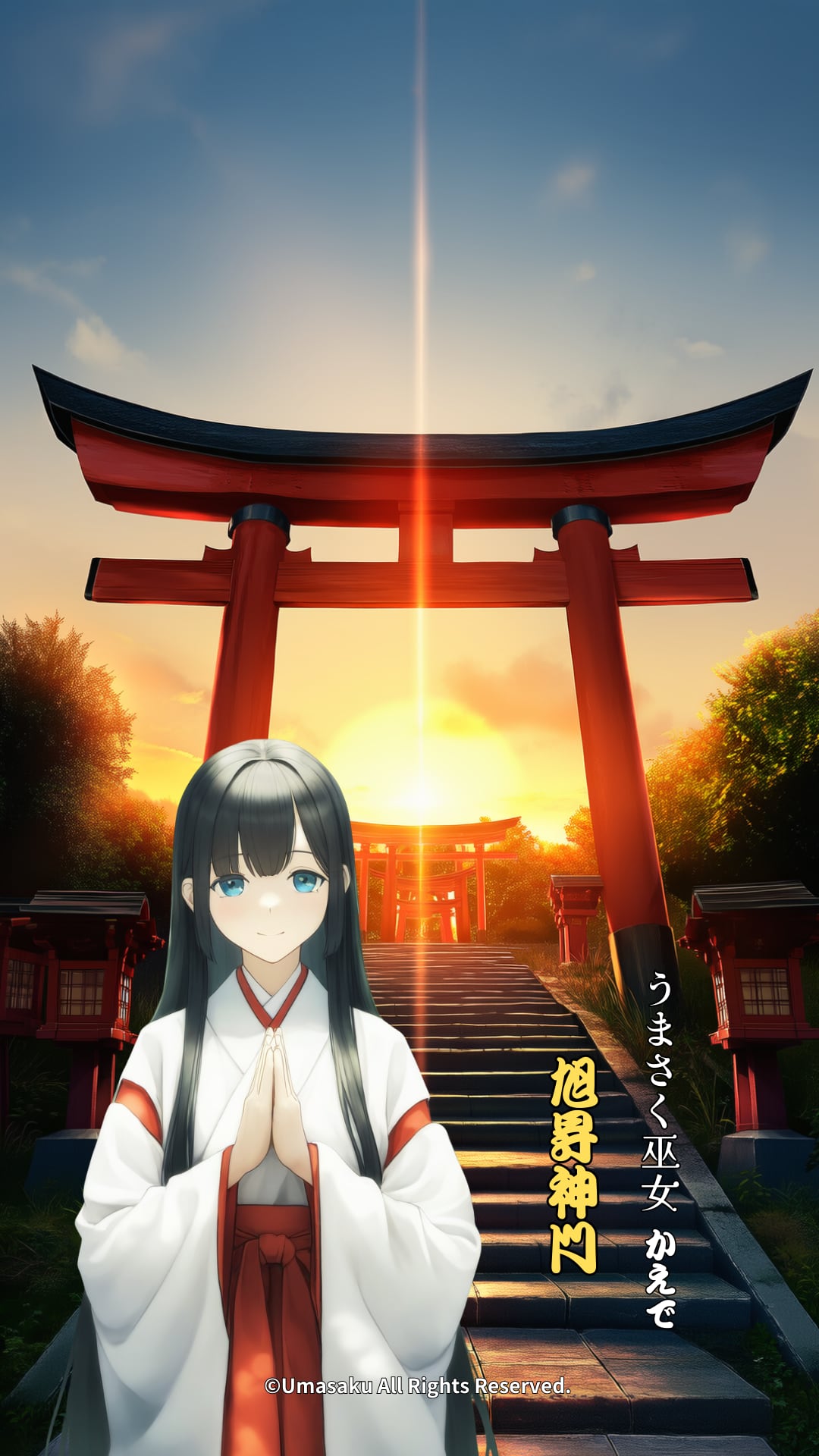 本商品に登場する「巫女かえで」は、当ショップが運営する「うまさく巫女」シリーズ(商標登録済)に登場するオリジナルキャラクターです。キャラクターデザイン・名称・世界観は、すべて当ショップで制作・管理しております。