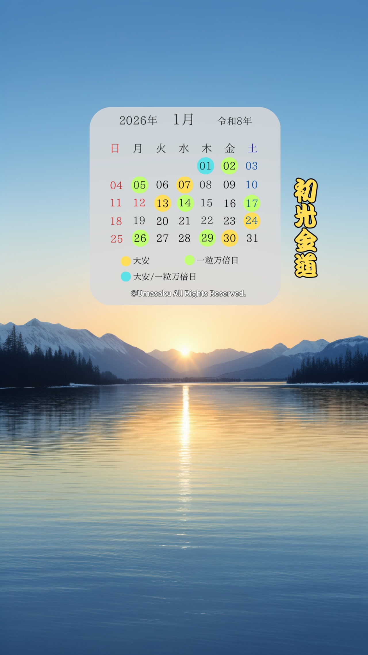 湖面に伸びる初光が、心の向きをまっすぐ整える一枚。