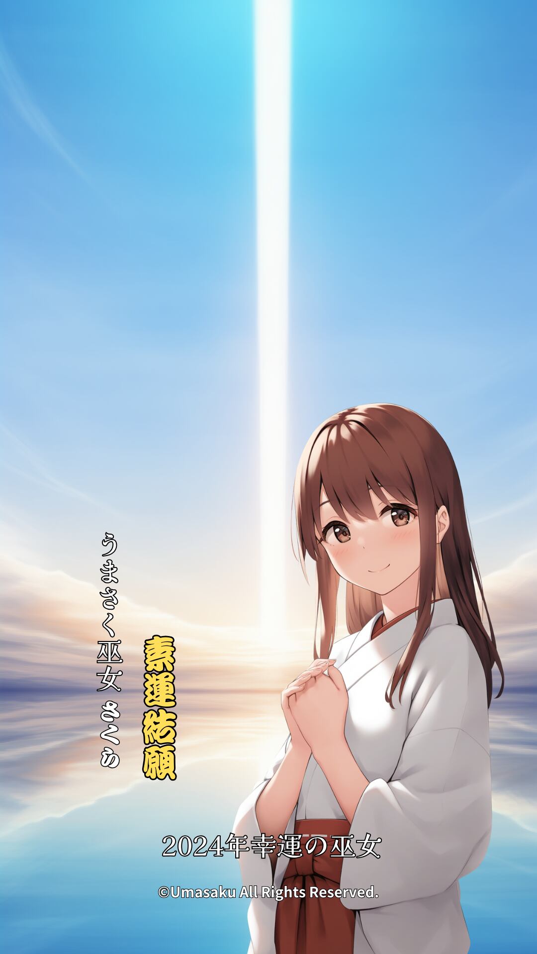本商品に登場する「巫女さくら」は、当ショップが運営する「うまさく巫女」シリーズ(商標登録出願中)に登場するオリジナルキャラクターです。キャラクターデザイン・名称・世界観は、すべて当ショップで制作・管理しております。