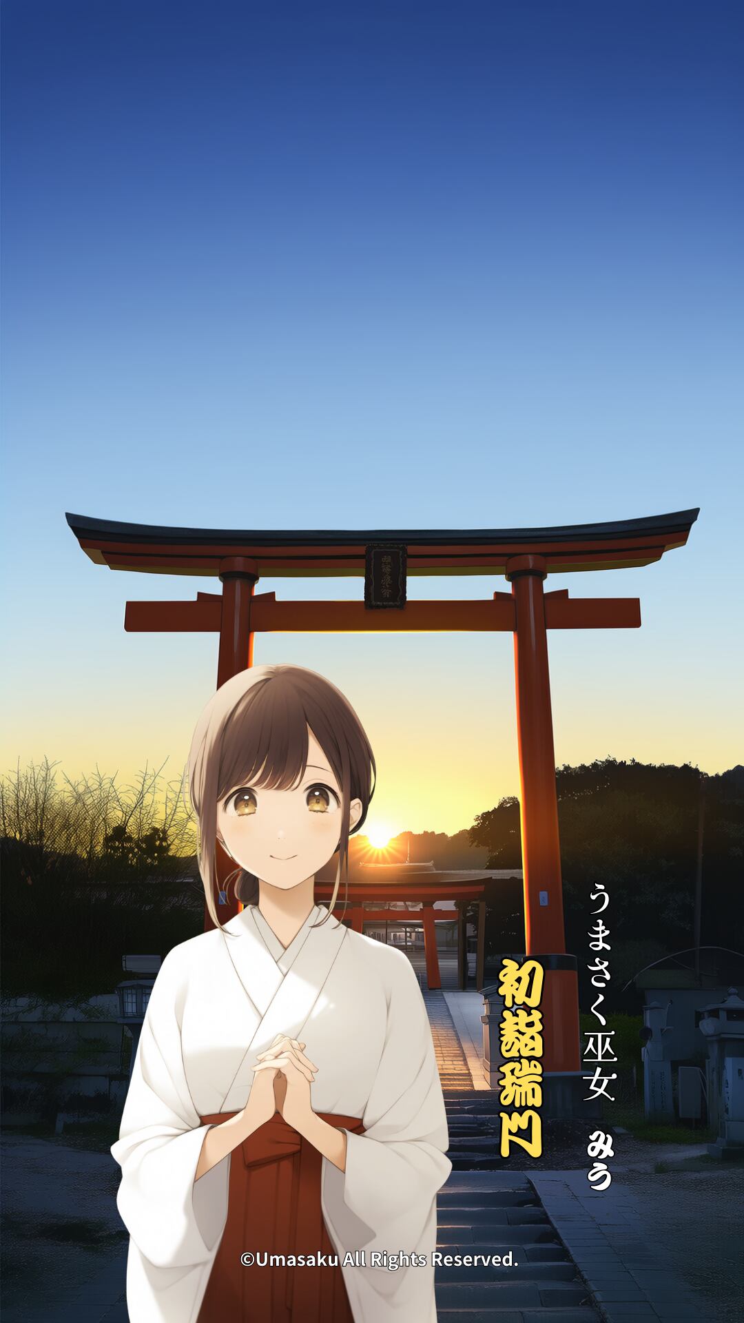 本商品に登場する「巫女みう」は、当ショップが運営する「うまさく巫女」シリーズ(商標登録出願中)に登場するオリジナルキャラクターです。キャラクターデザイン・名称・世界観は、すべて当ショップで制作・管理しております。