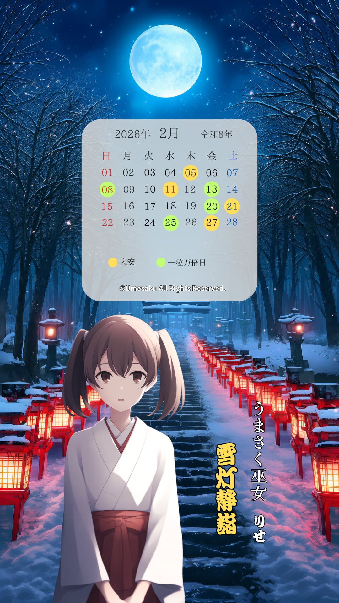 本商品は 1月カレンダー付き・巫女りせ入りスマホ壁紙2枚 と、