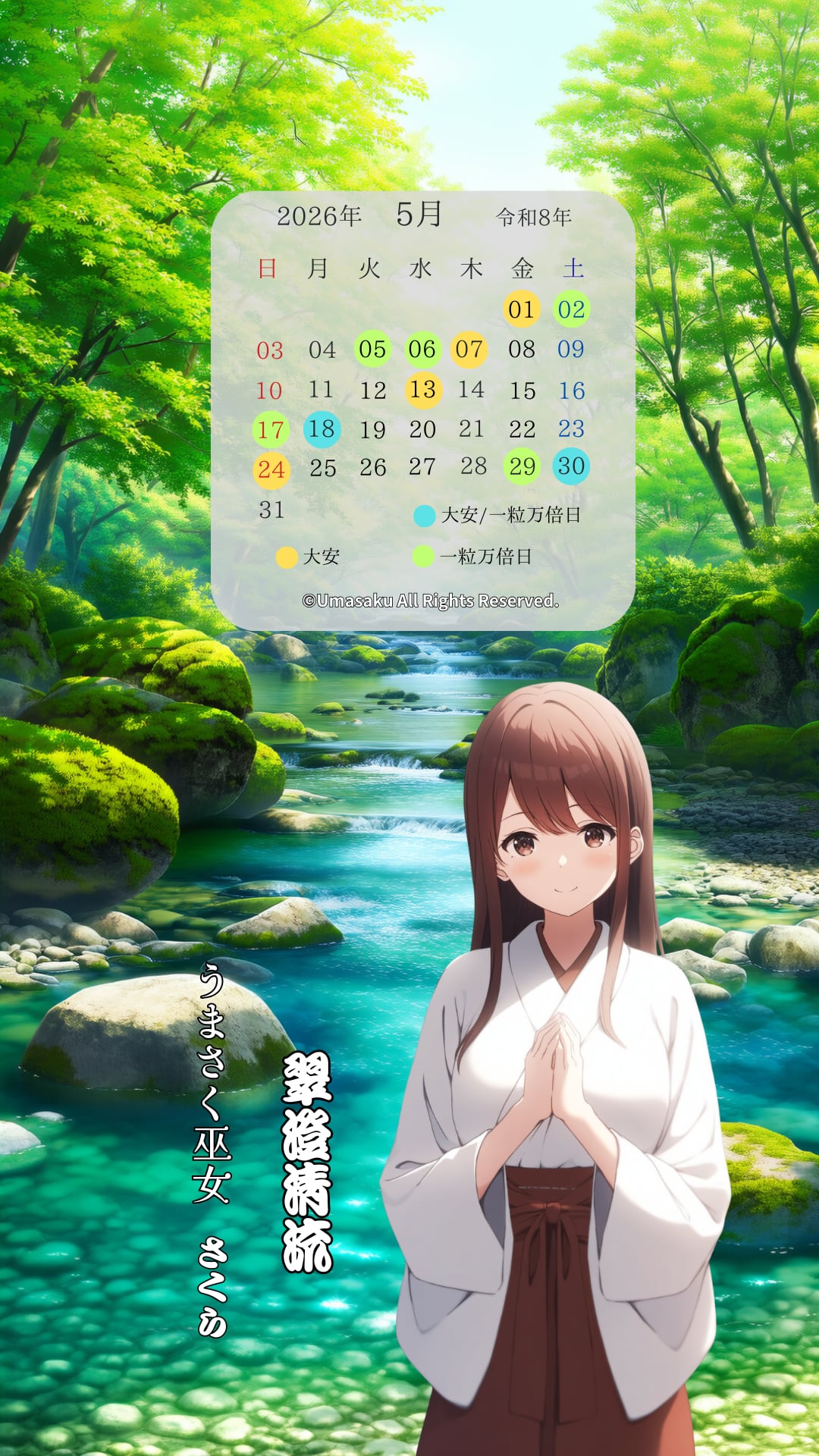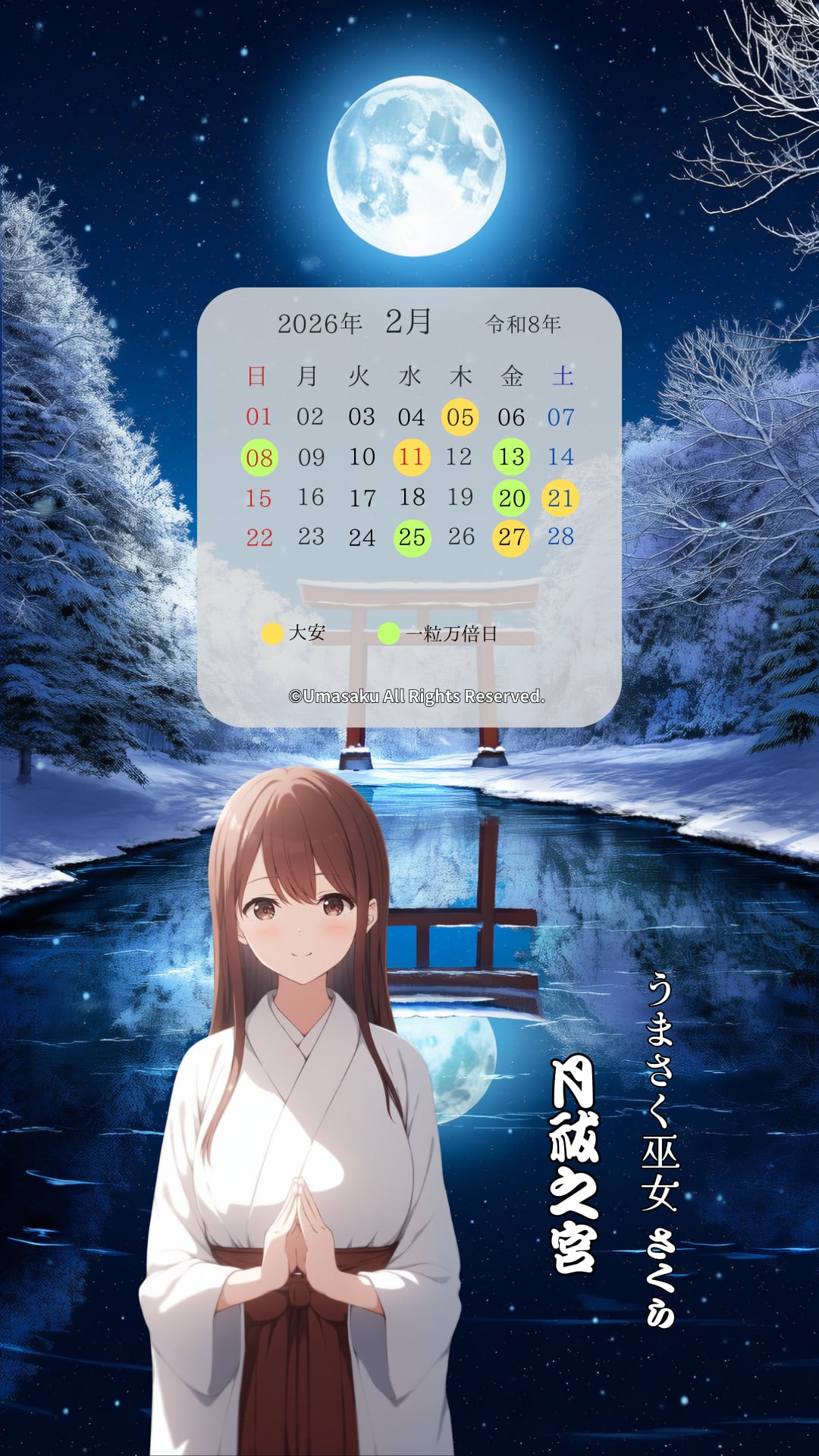 2月〜5月のカレンダー付き 巫女壁紙【4枚】と