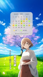 2月〜5月のカレンダー付き 巫女壁紙【4枚】と