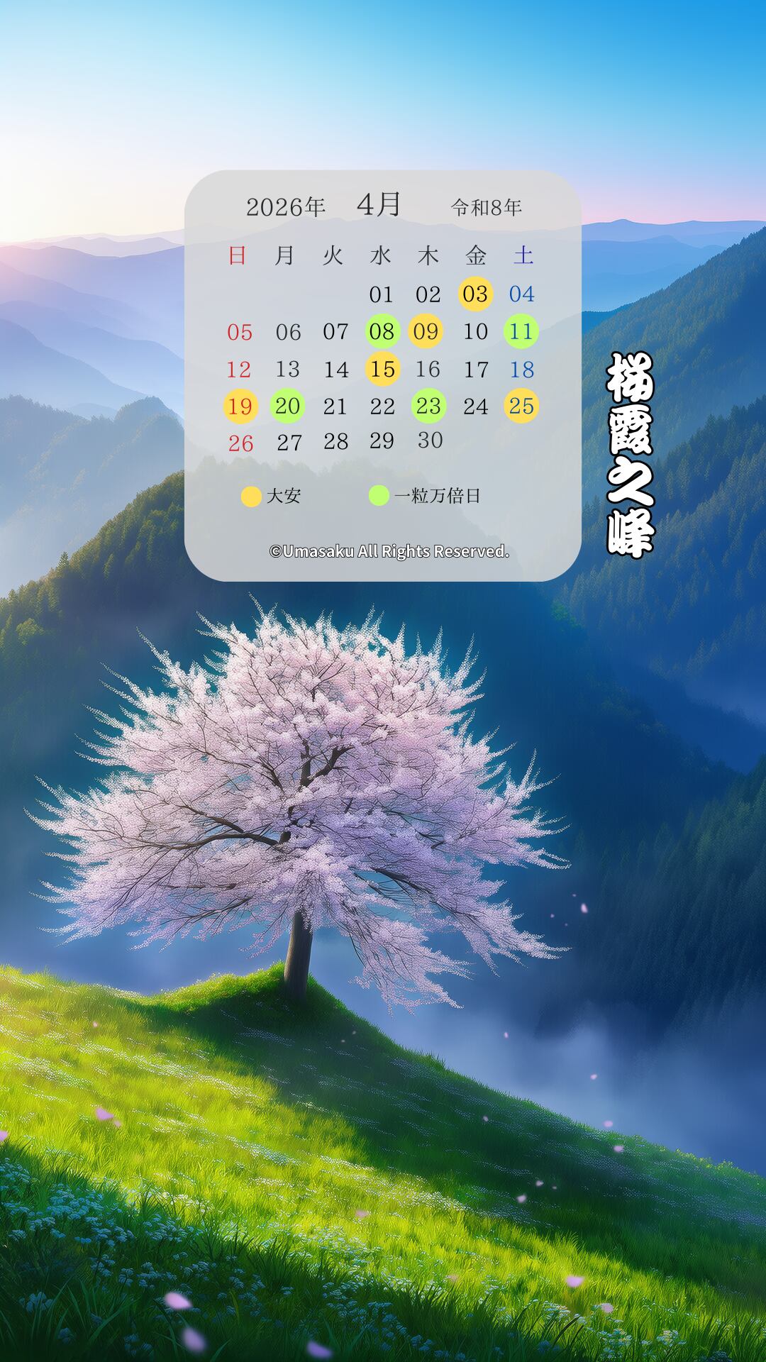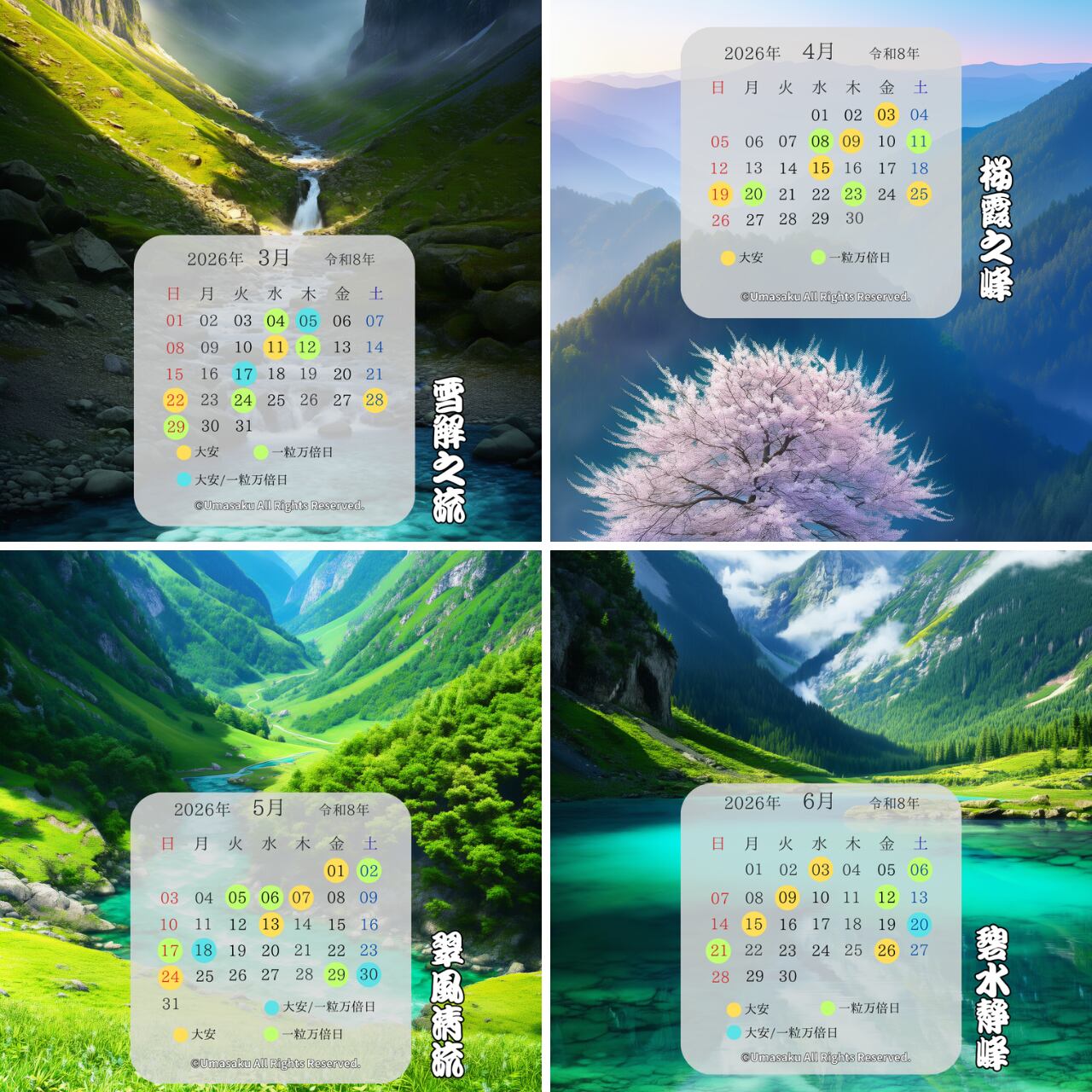 2026年3月〜6月のカレンダー付きスマホ壁紙【全4枚】と、