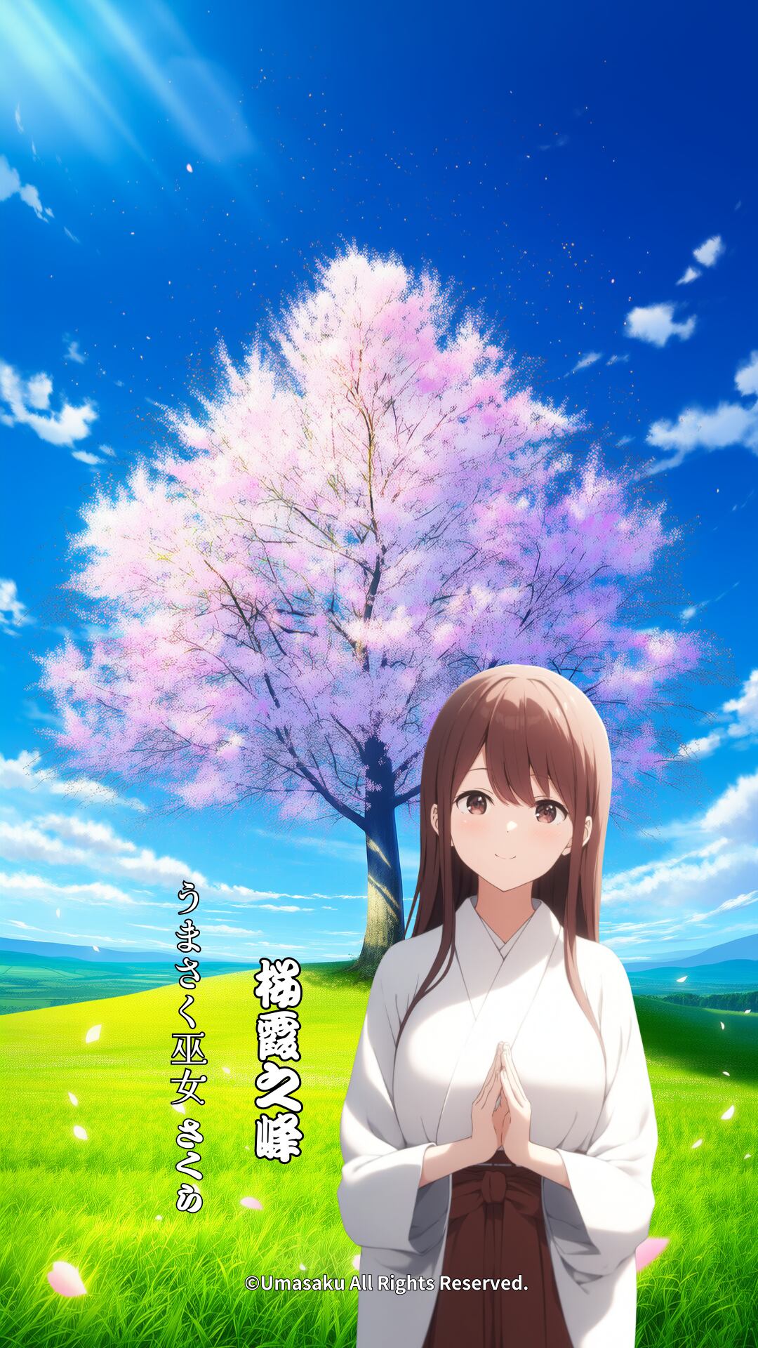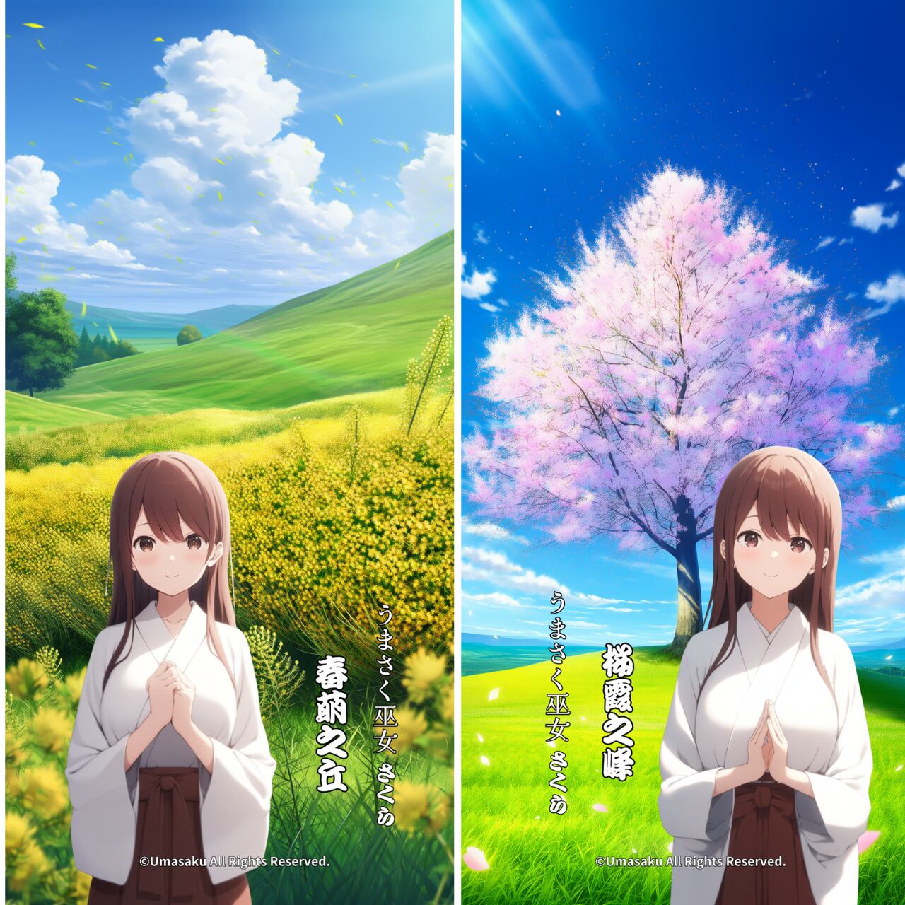 本商品に登場する「巫女さくら」は、当ショップが運営する「うまさく巫女」シリーズ(商標登録出願中)に登場するオリジナルキャラクターです。キャラクターデザイン・名称・世界観は、すべて当ショップで制作・管理しております。