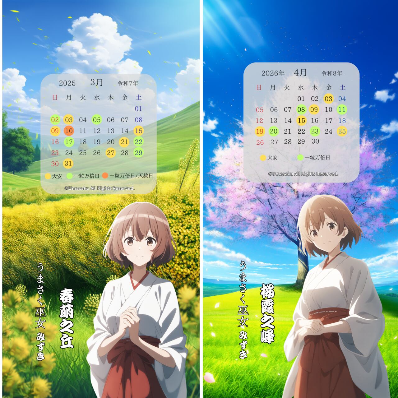 そんな巫女たちの“祈りの風景”をスマホ壁紙に仕立てました。