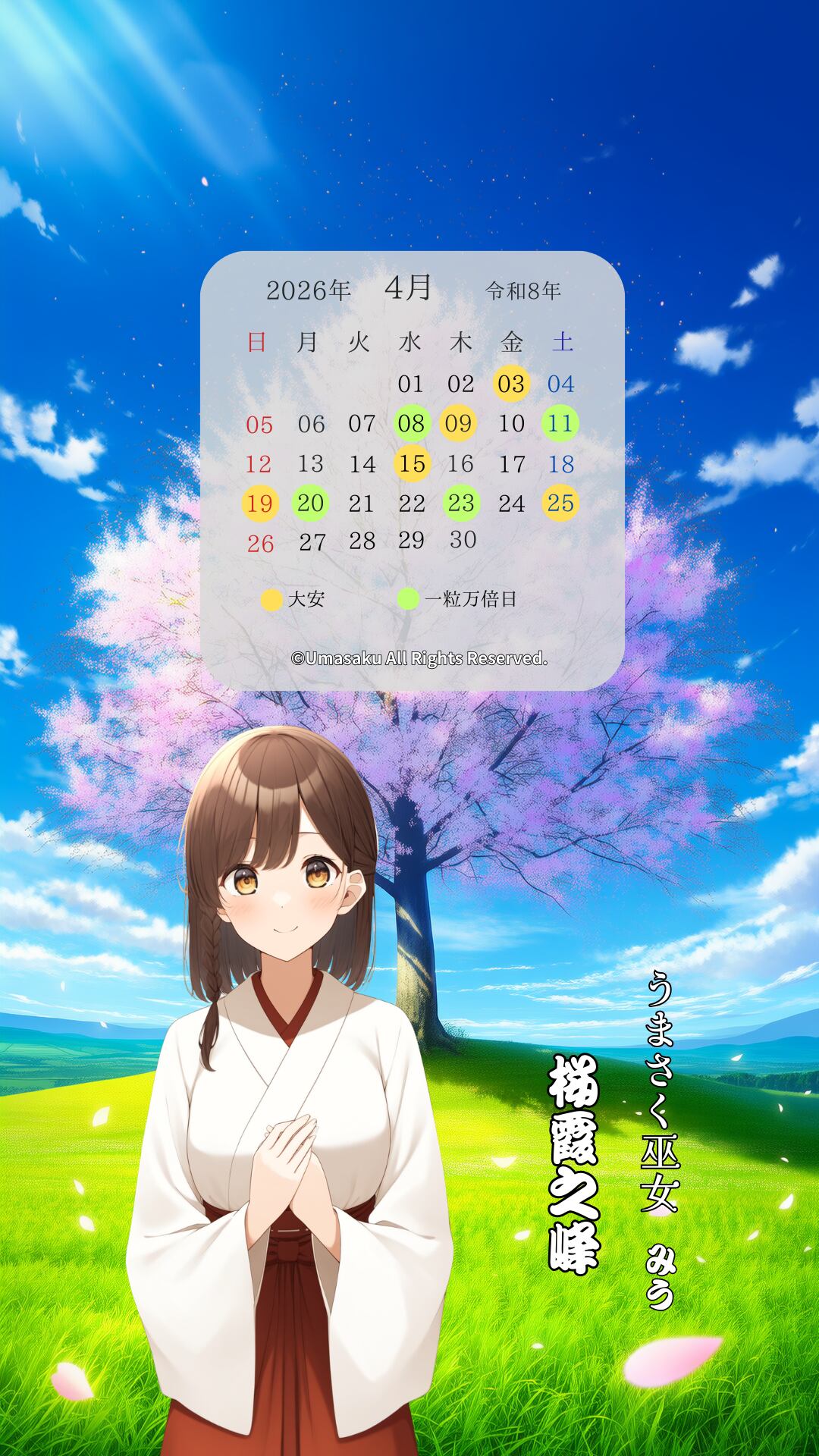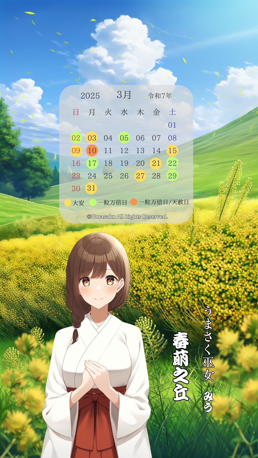 本商品に登場する「巫女みう」は、当ショップが運営する「うまさく巫女」シリーズ(商標登録出願中)に登場するオリジナルキャラクターです。キャラクターデザイン・名称・世界観は、すべて当ショップで制作・管理しております。