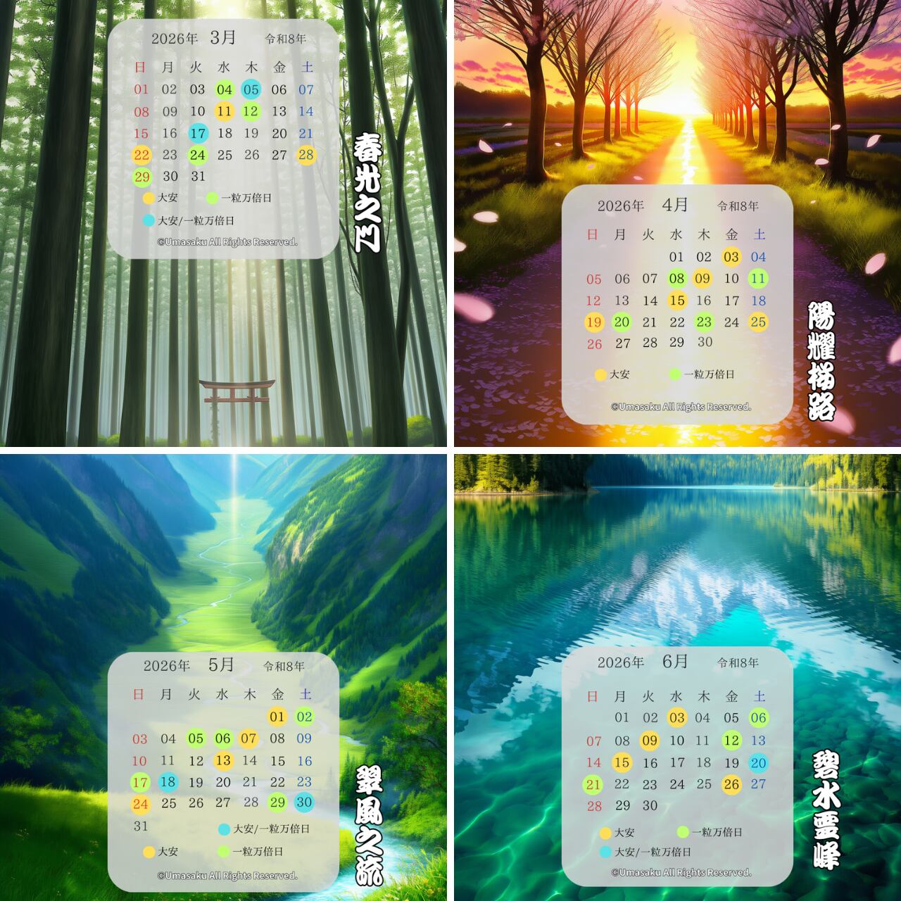 •高画質スマホ壁紙 4枚(3月〜6月)