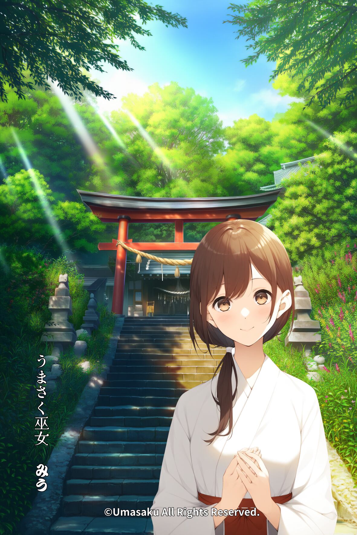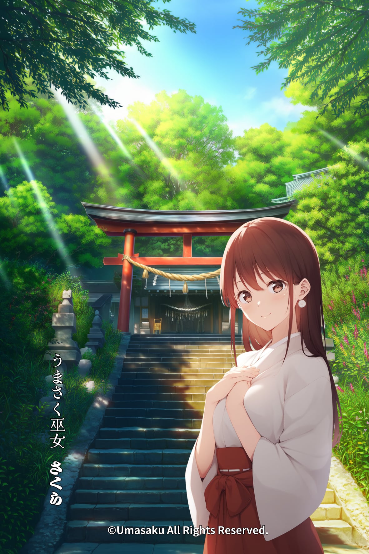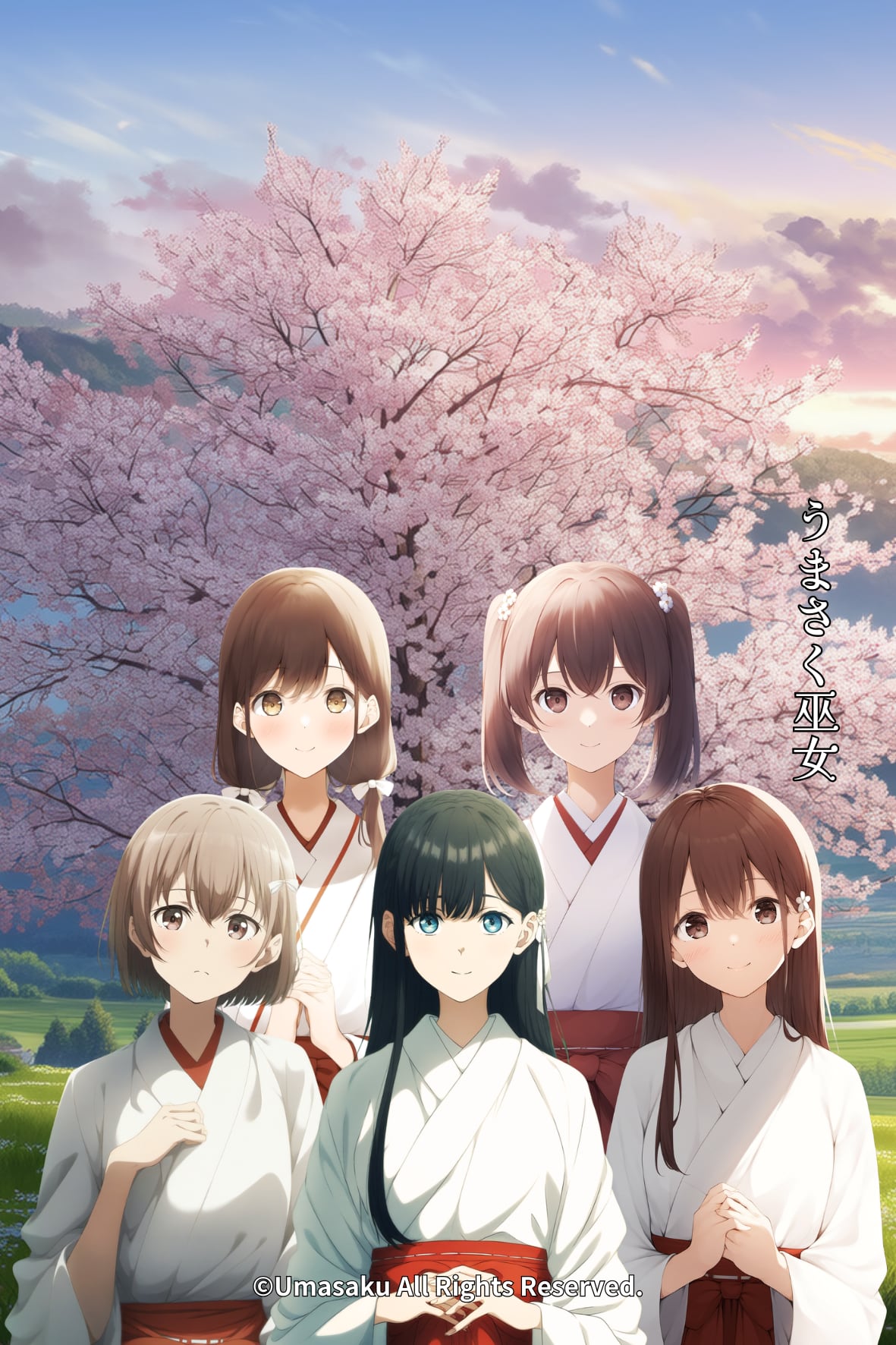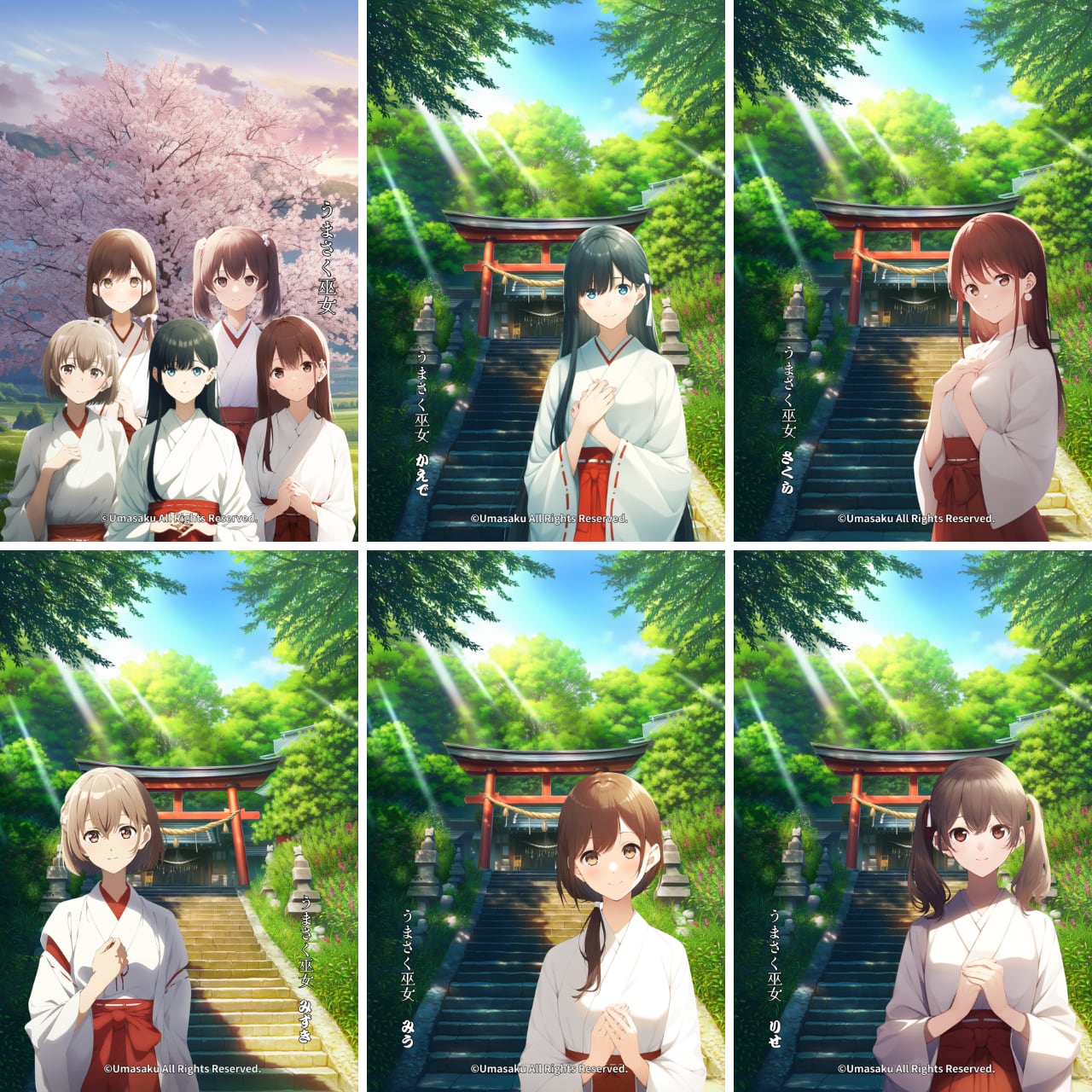本商品に登場する「かえで」「さくら」「みずき」「みう」「りせ」は、「うまさく巫女」シリーズに登場するオリジナルキャラクターです。