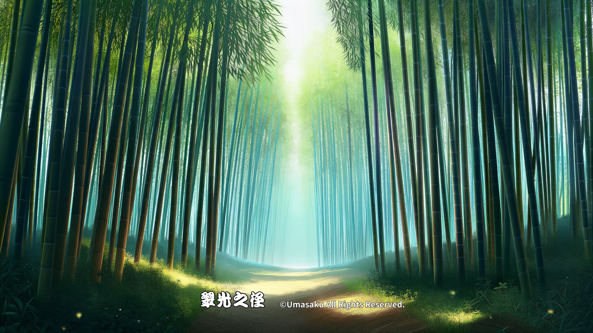 竹林の中へと続く光の道。