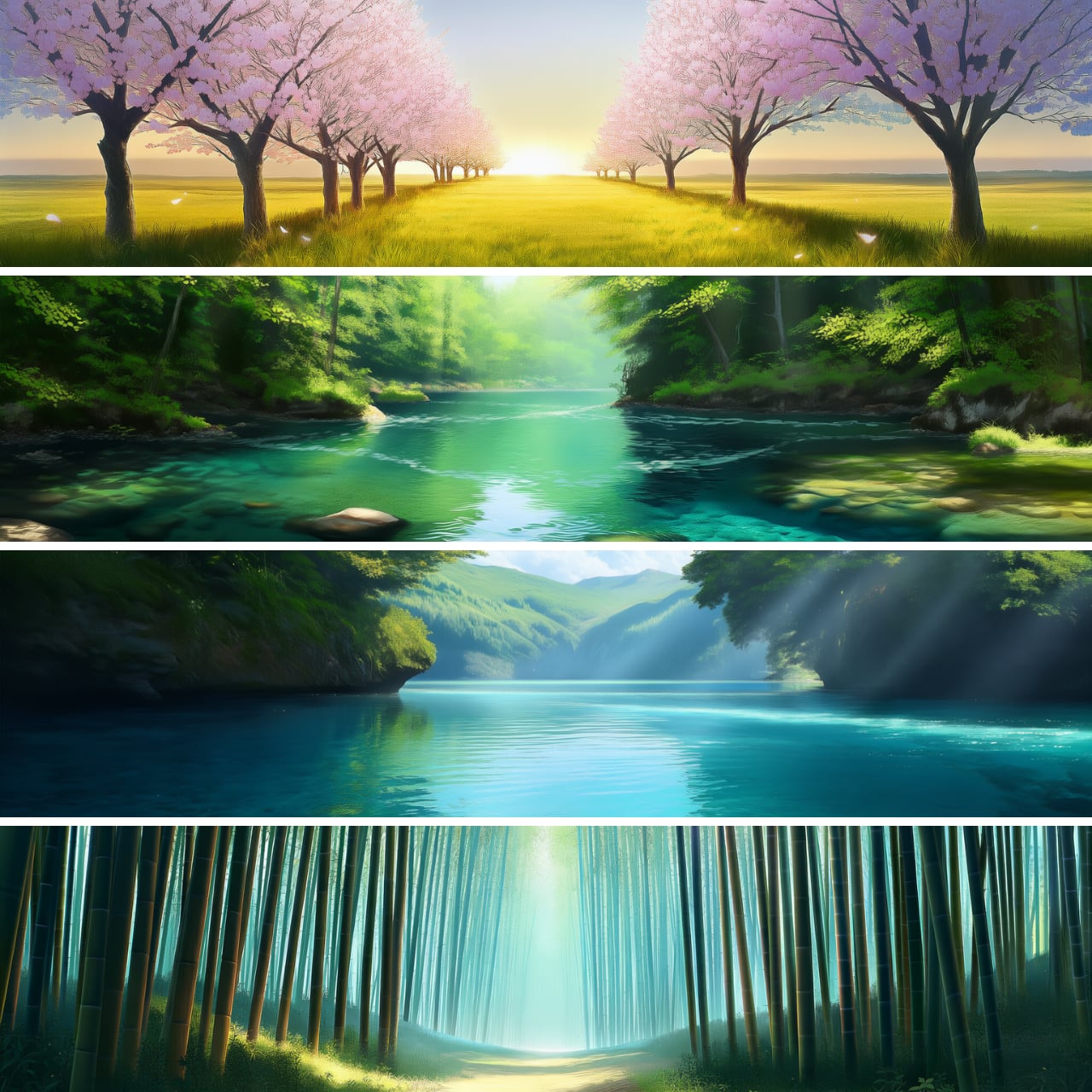 “始まり → 流れ → 整え → 前進” の巡りを表現した4枚構成です。