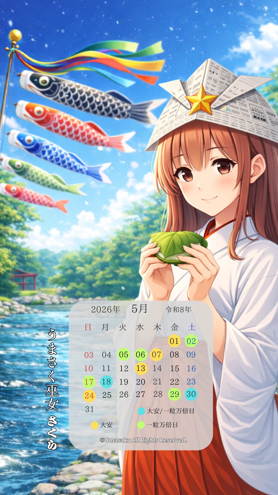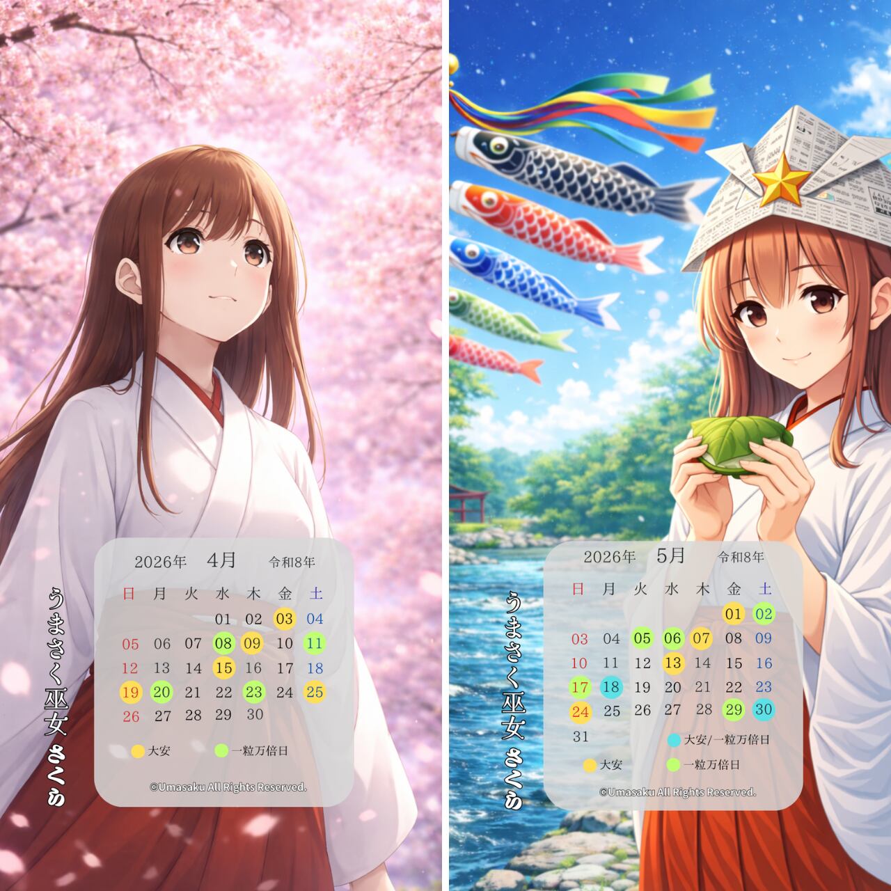 本商品に登場する「巫女さくらあ」は、当ショップが運営する「うまさく巫女」シリーズ(商標登録出願中)に登場するオリジナルキャラクターです。キャラクターデザイン・名称・世界観は、すべて当ショップで制作・管理しております。
