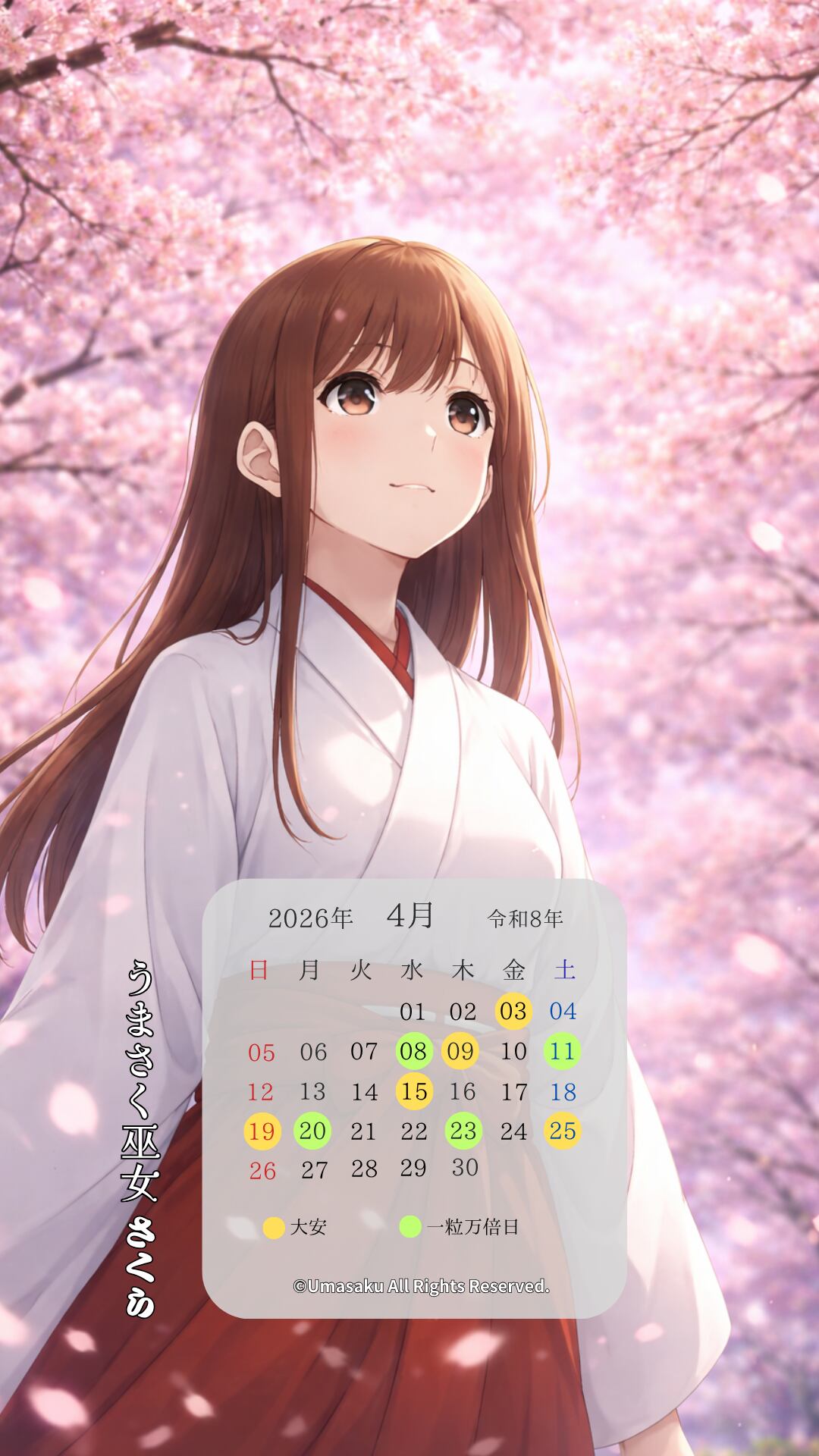 【巫女さくらスマホ壁紙】桜の祈りと春の光セット〈4〜5月カレンダー・1ヶ月利用コード付き〉
