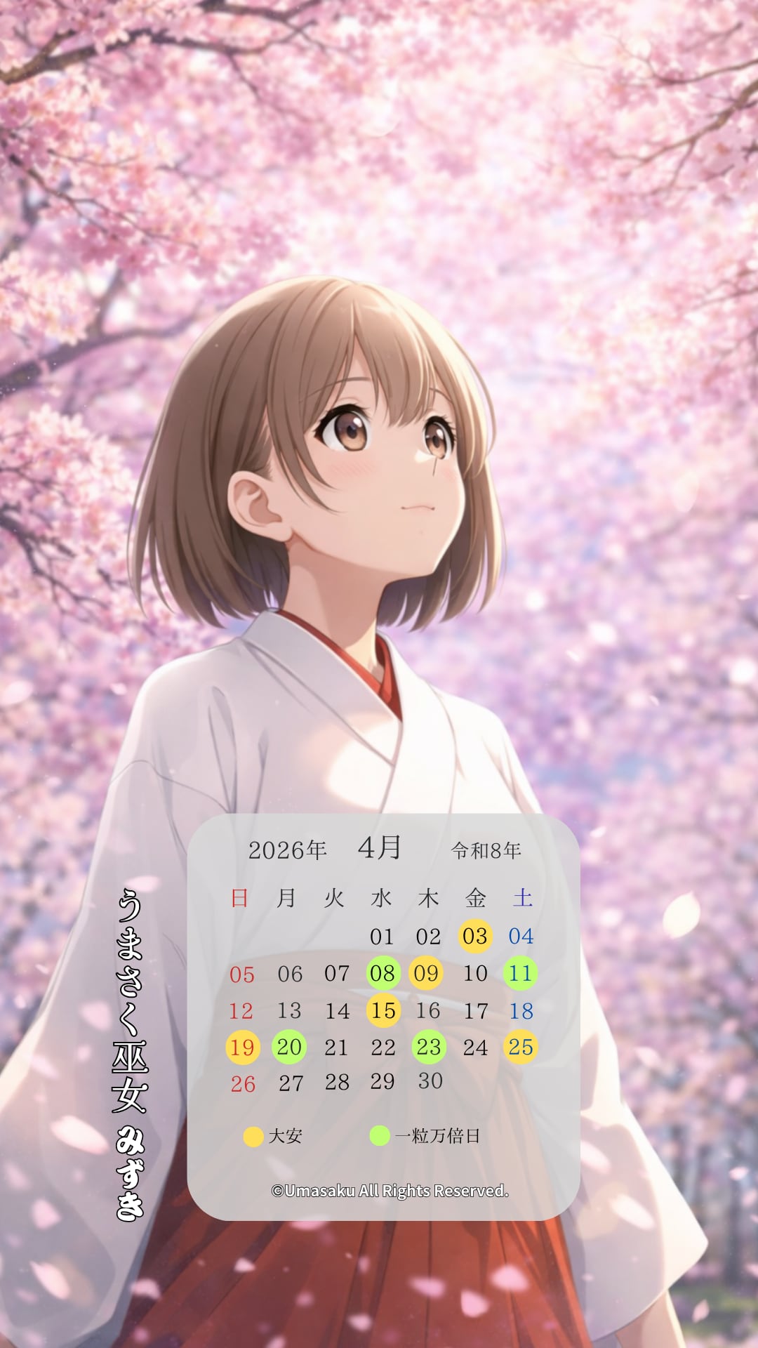 【巫女みずきスマホ壁紙】桜の祈りと春の光セット〈4〜5月カレンダー・1ヶ月利用コード付き〉