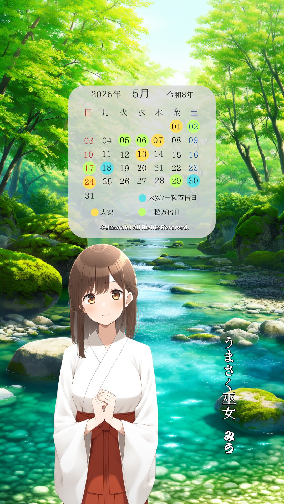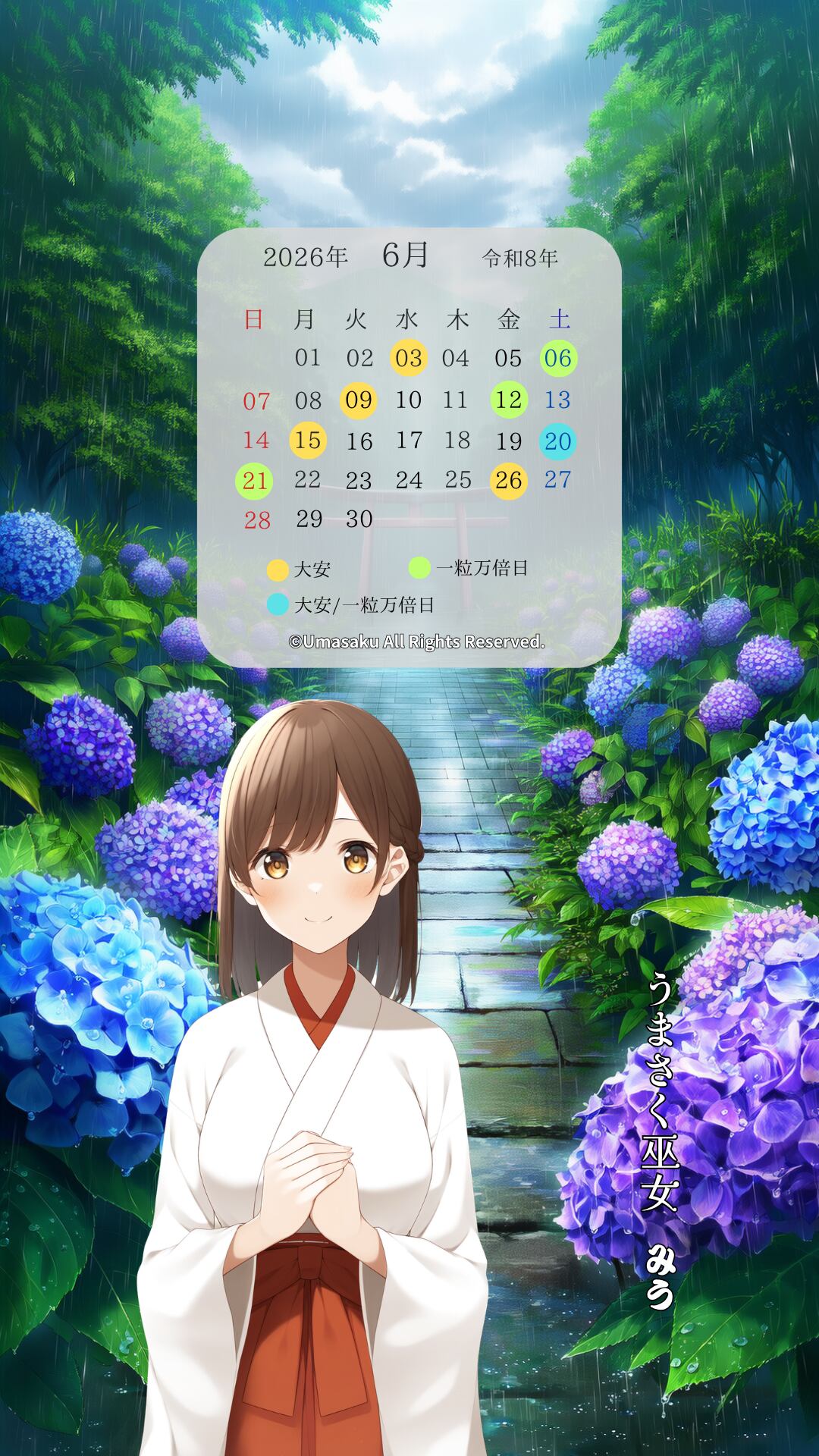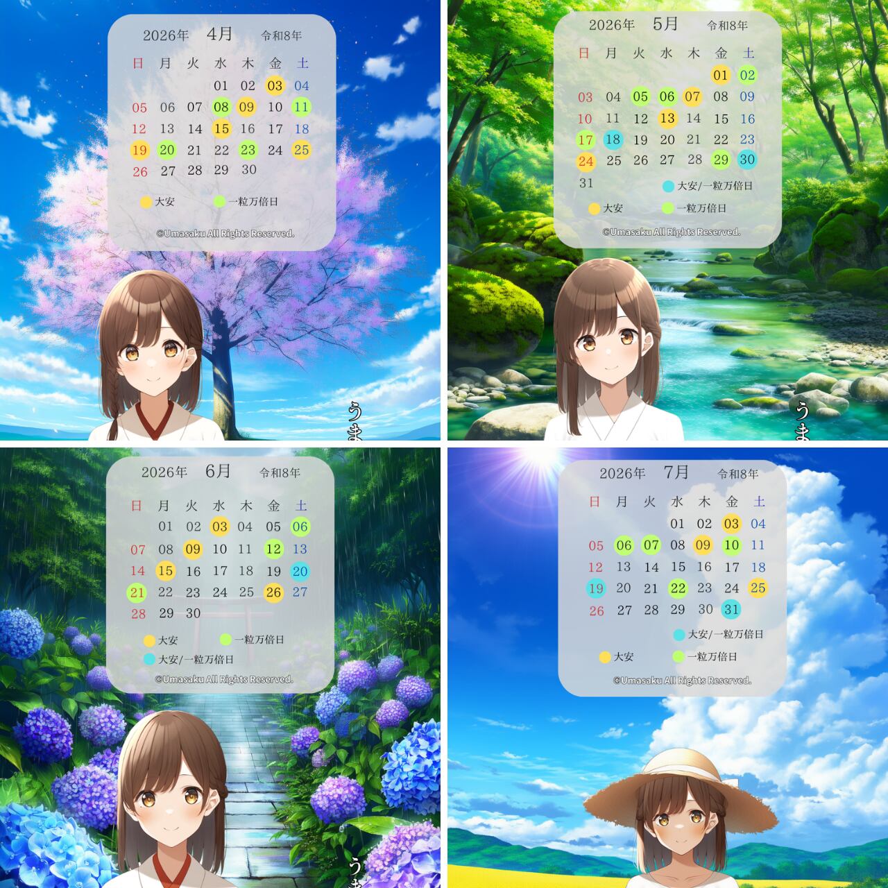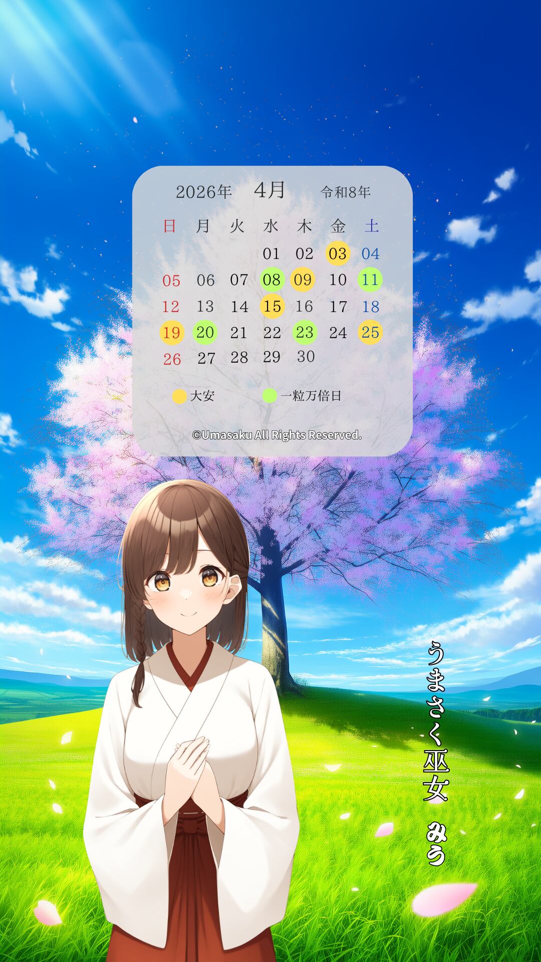 2026年4月〜7月のカレンダー付き巫女壁紙【4枚】と
