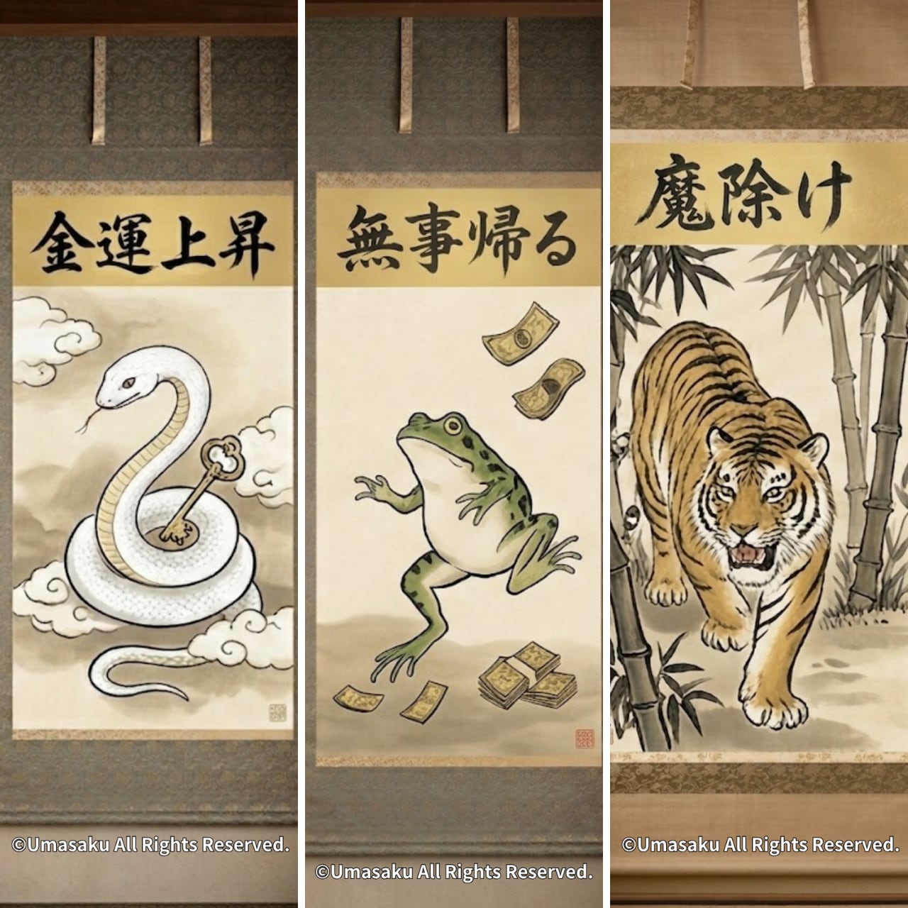 ✅ 開運掛け軸ステッカー3枚(サイズ:5cm×7.5cm)