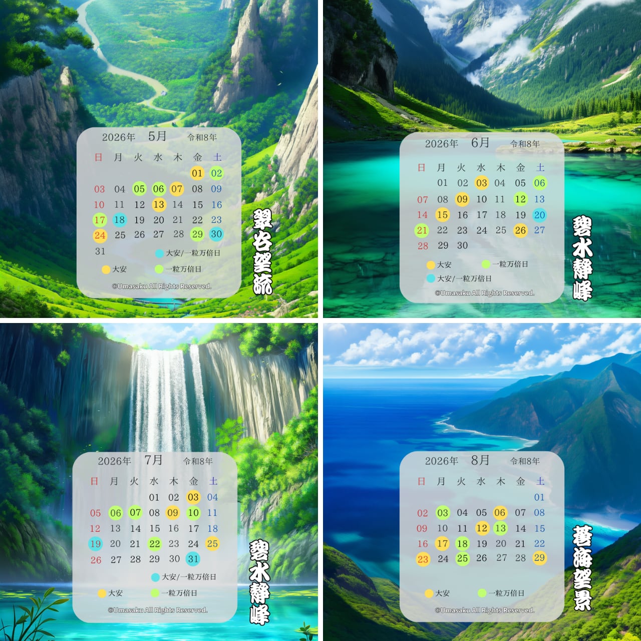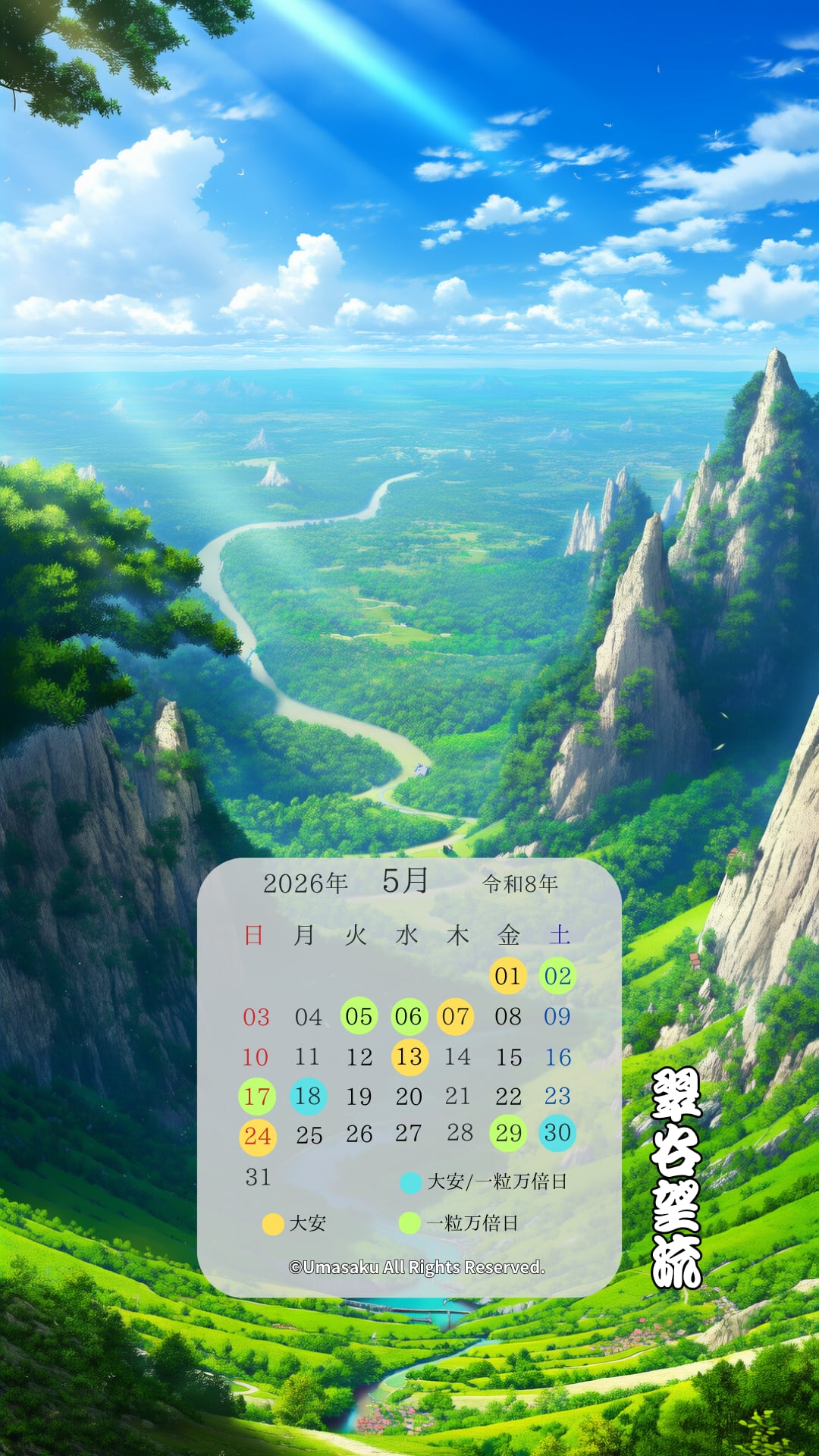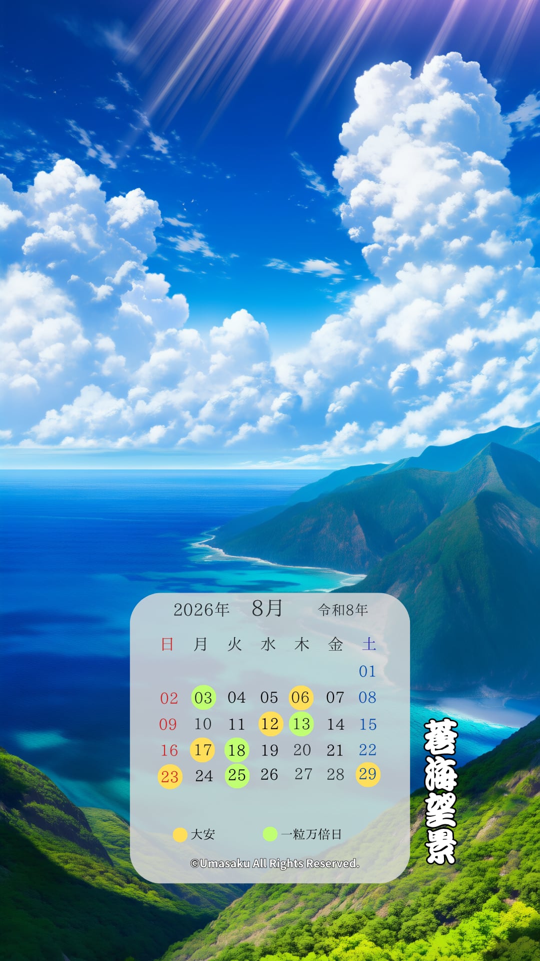 【開運風景スマホ用壁紙】光導と水景の巡り〈5〜8月〉カレンダーあり(利用コード3ヶ月付き)