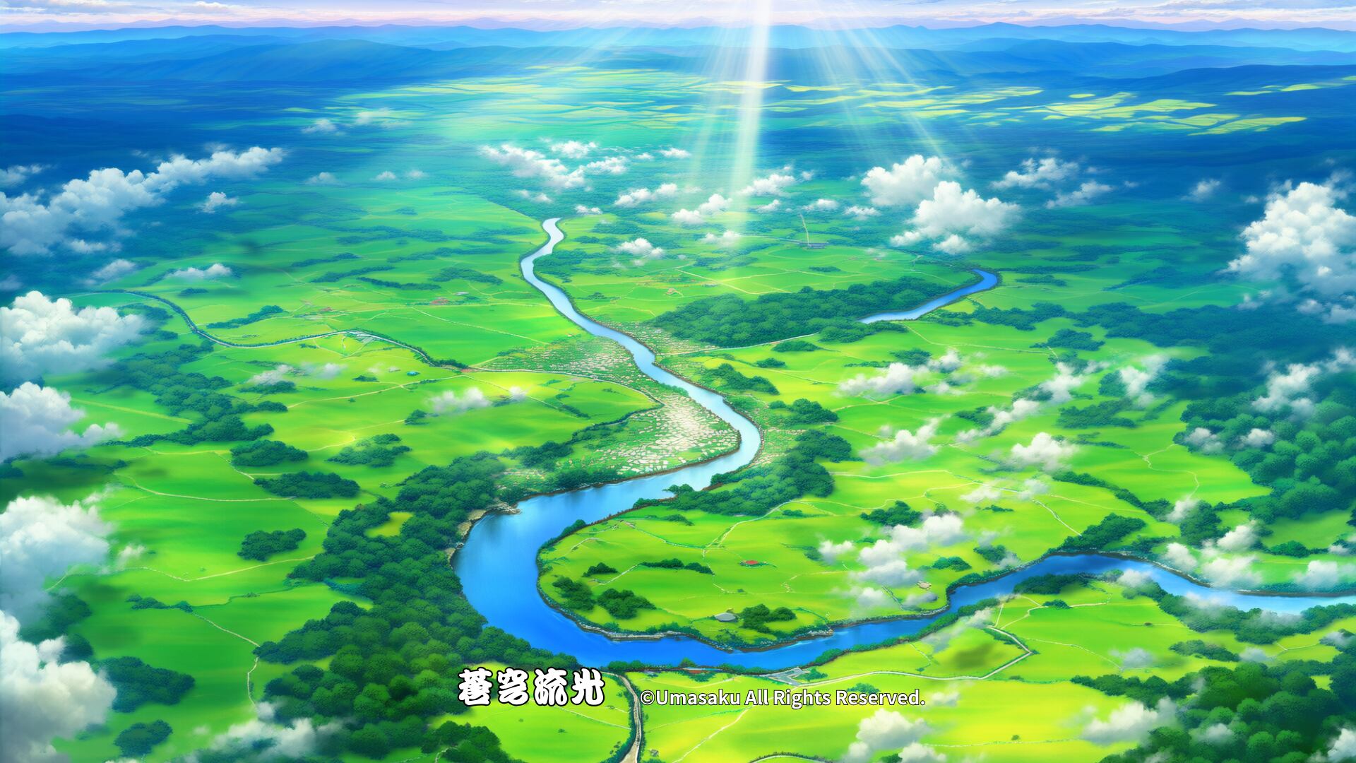 大地を流れる川と、空から差し込む光。