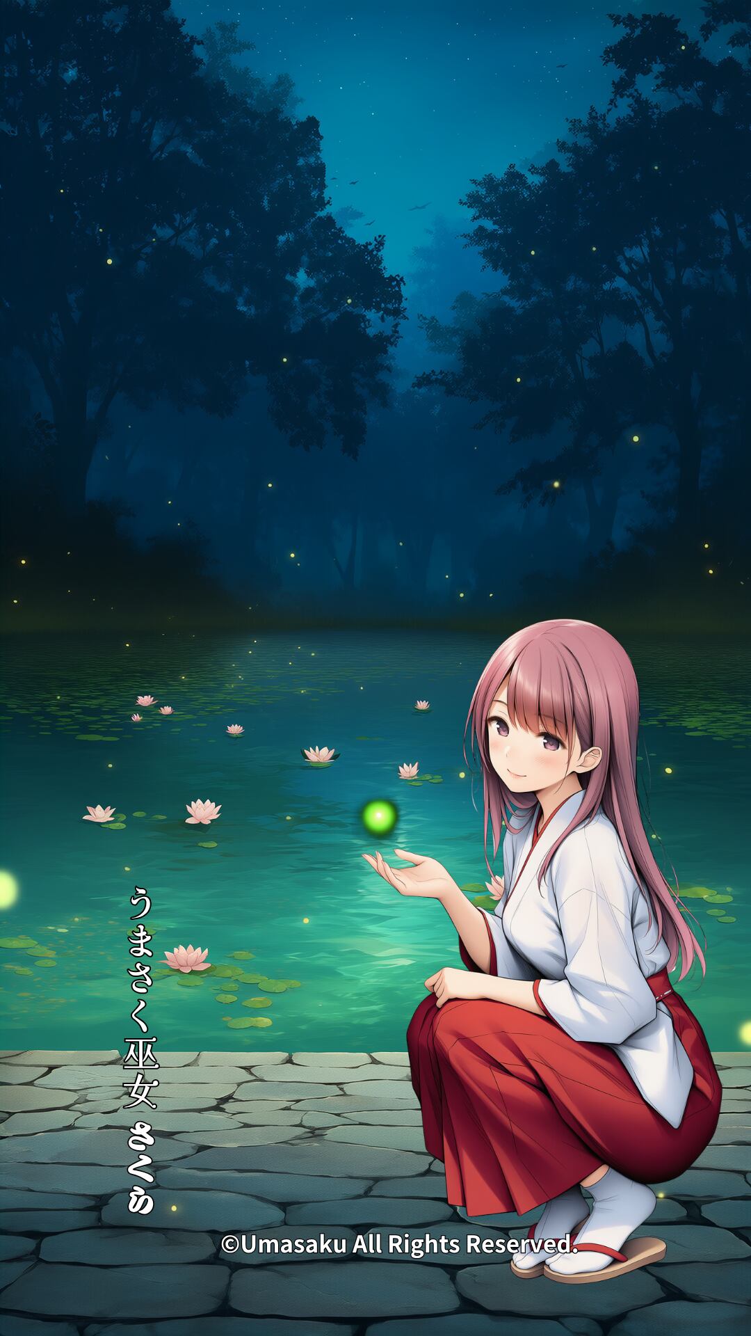 【巫女さくらスマホ壁紙】藤の光と蛍の祈りセット(カレンダーなし・利用コード1ヶ月付き)