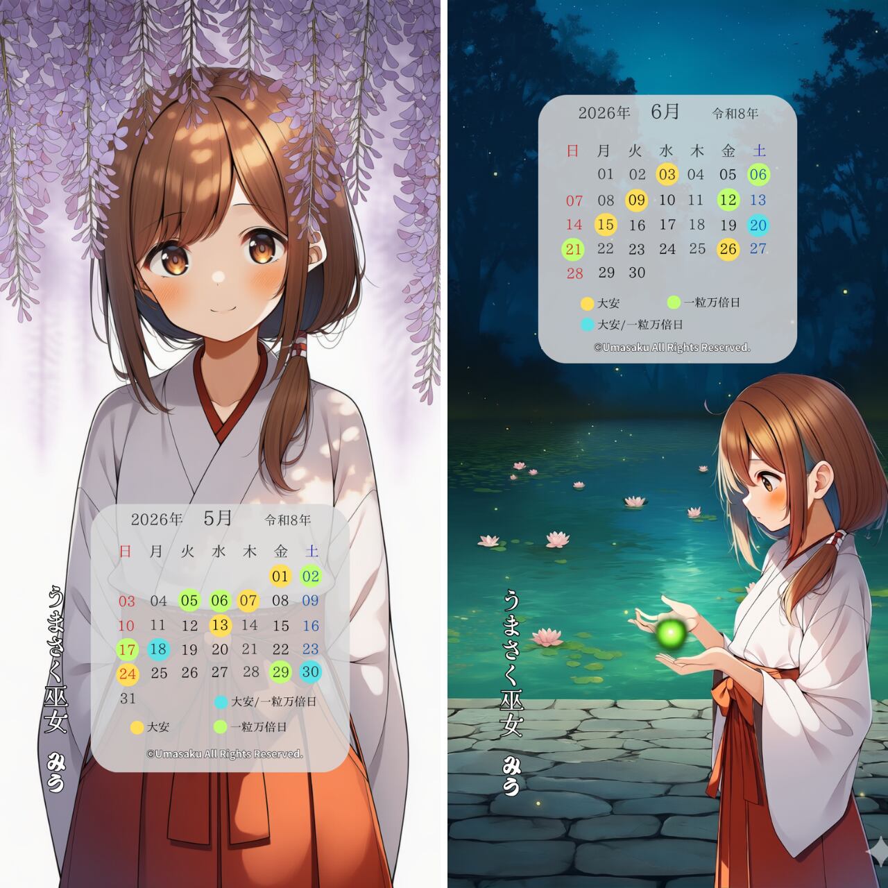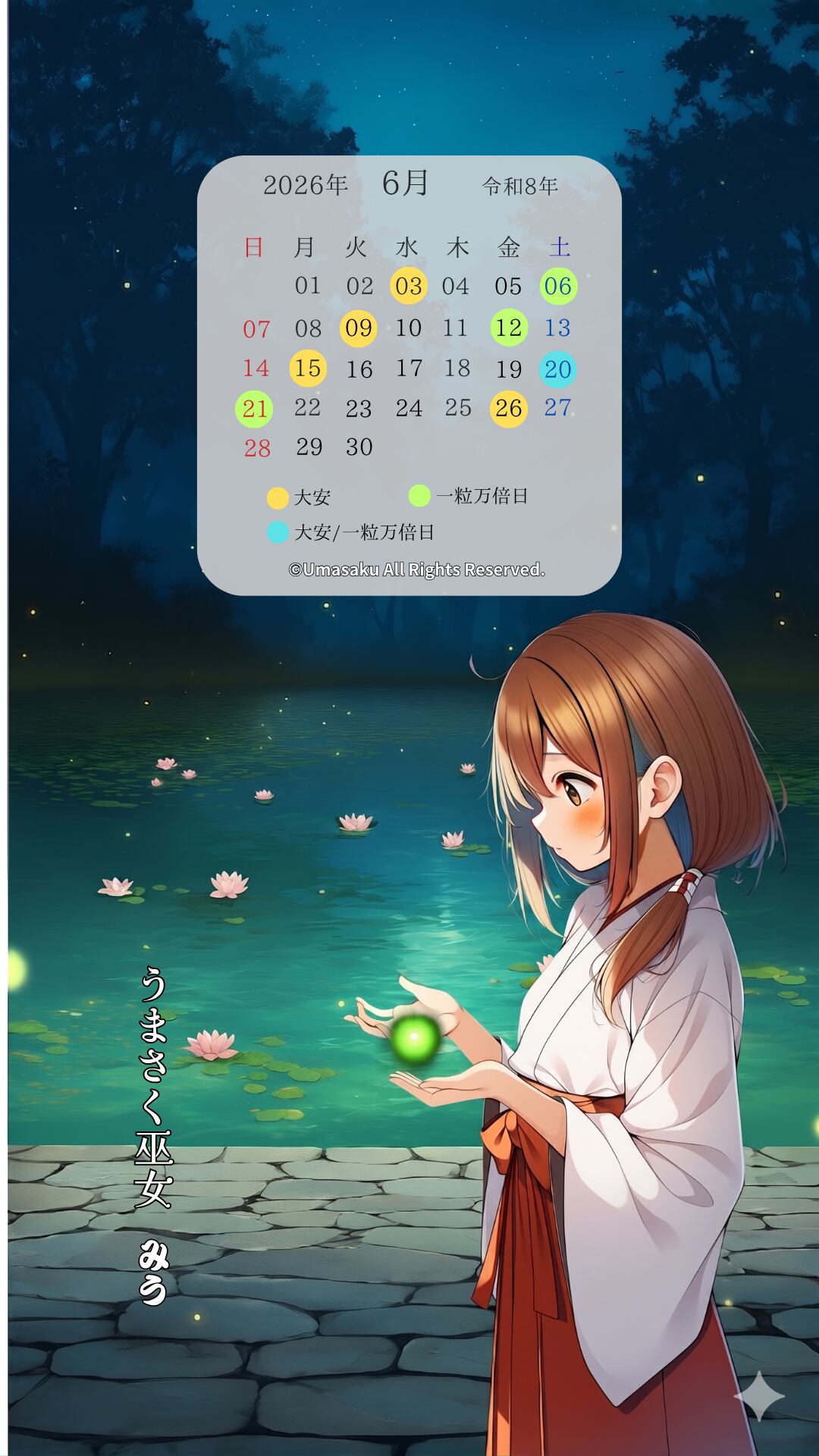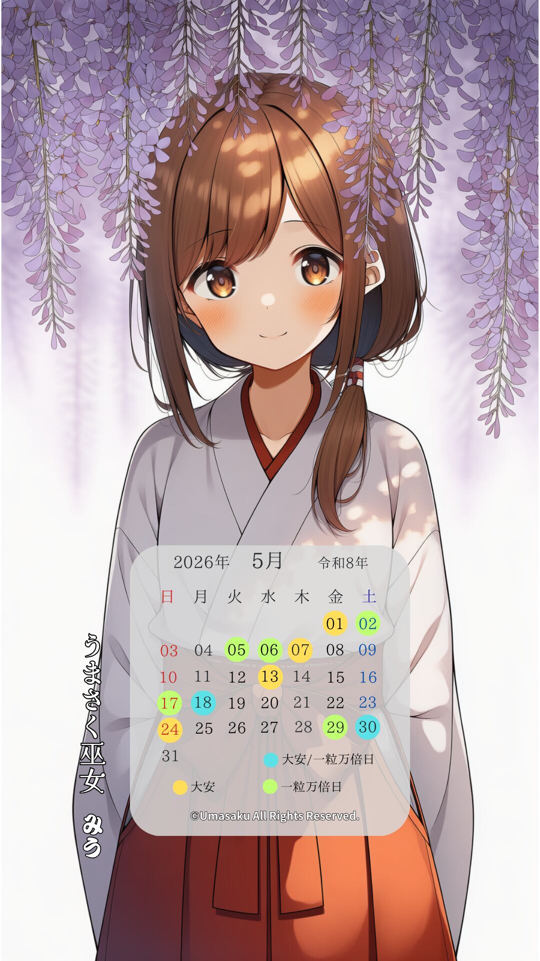 【巫女みうスマホ壁紙】藤の光と蛍の祈りセット〈5〜6月カレンダー・1ヶ月利用コード付き〉s