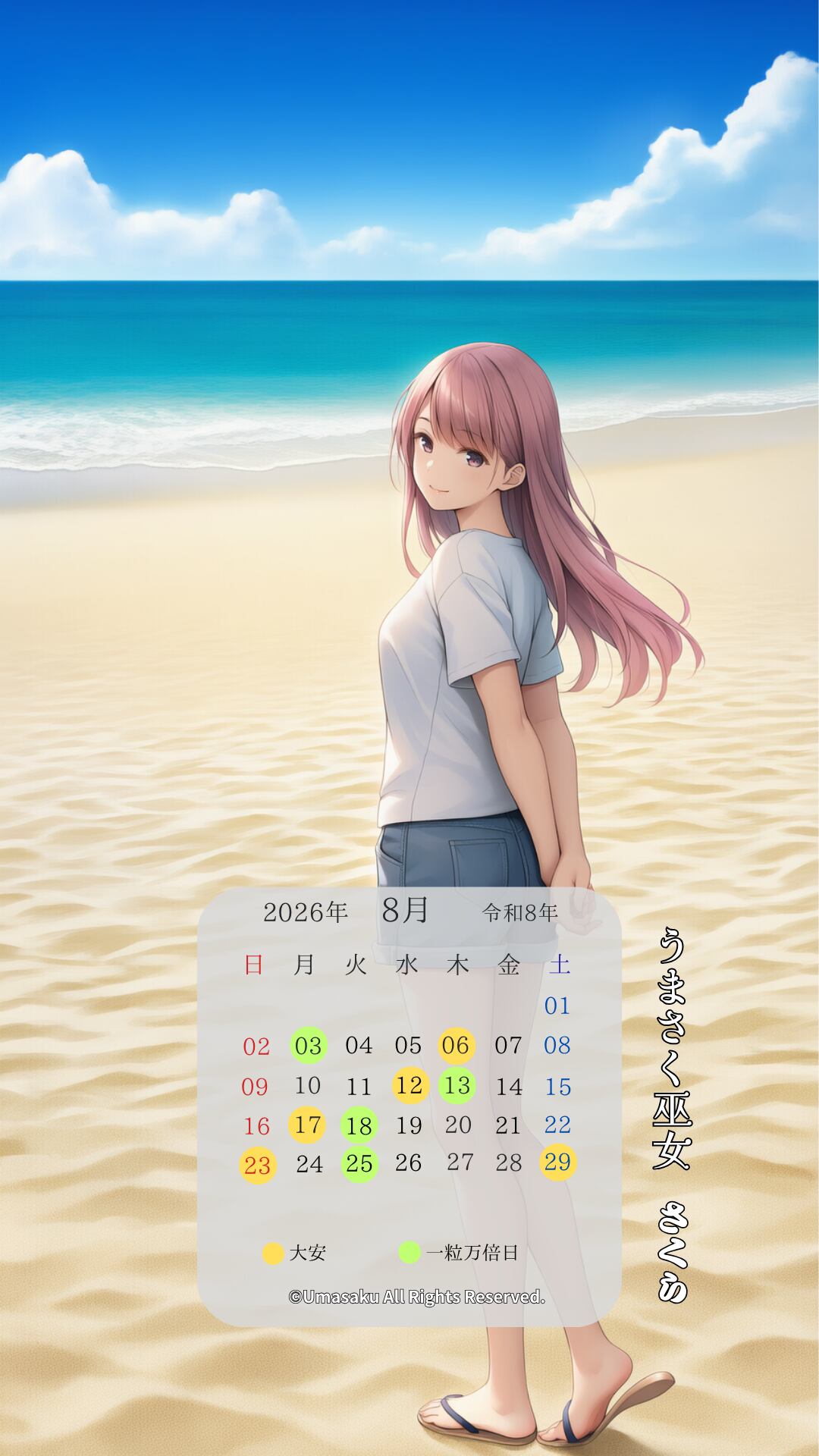 2026年5月〜8月のカレンダー付き巫女壁紙【4枚】と