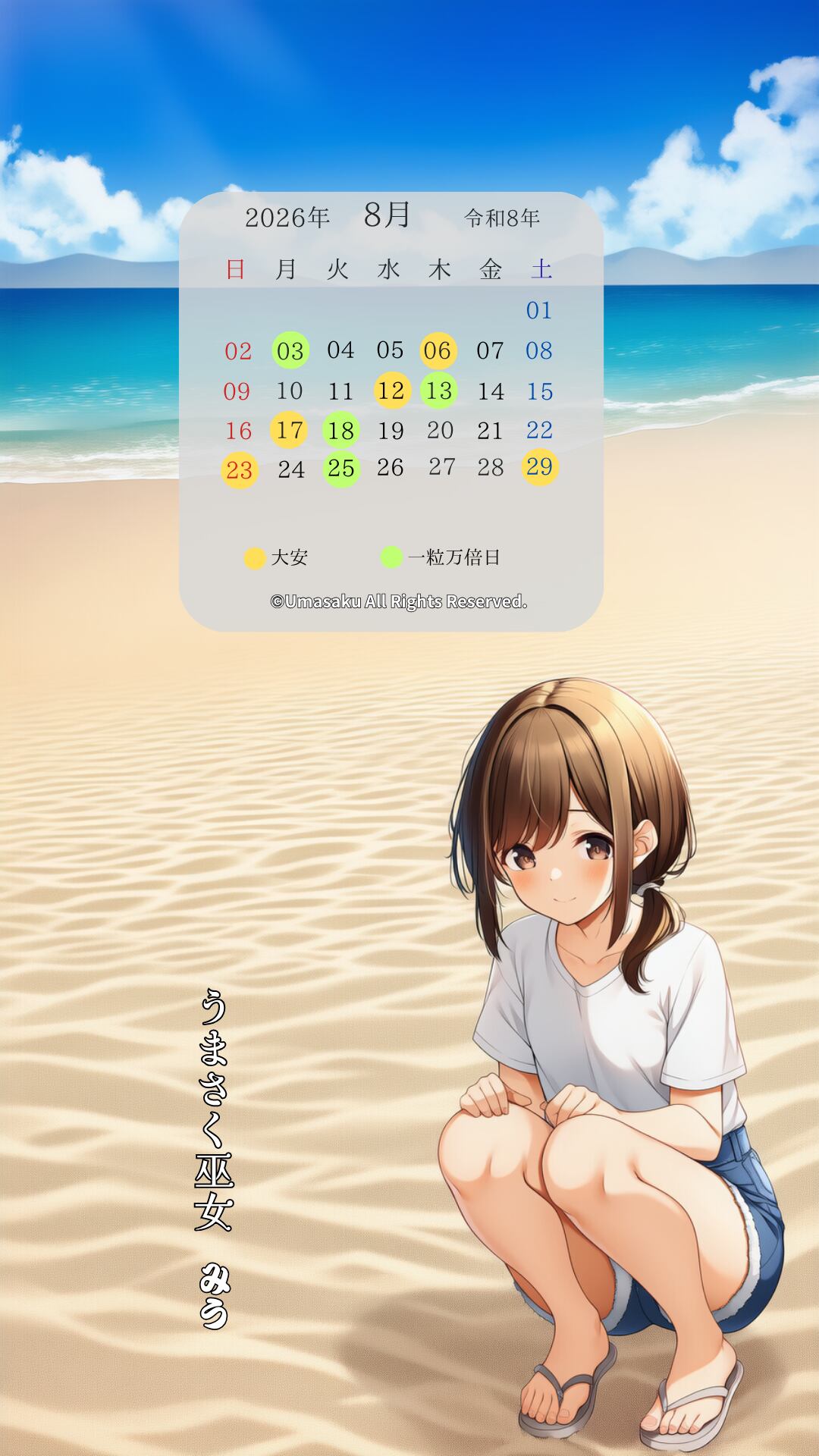 2026年5月〜8月のカレンダー付き巫女壁紙【4枚】と
